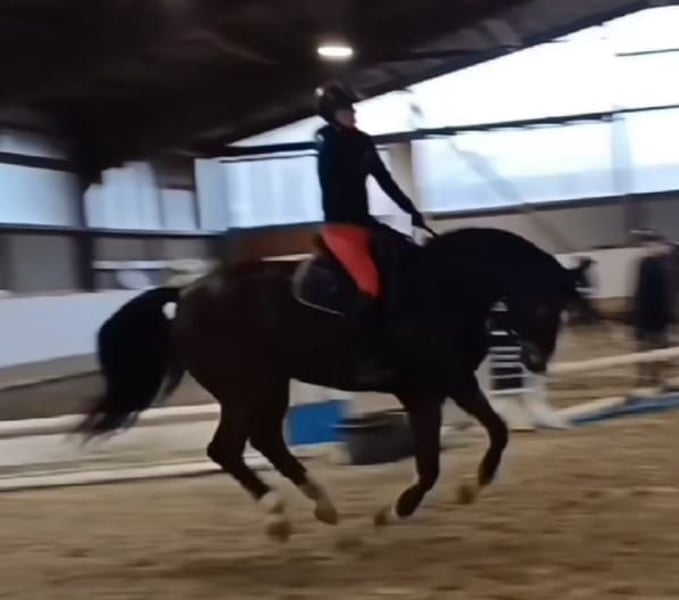 V: Balous Bellini x MV: Grand Coeur, Westfale Zum Verkauf steht dieser wunderschöne, sympathische Wallach mit bester Abstammung, 3 sehr guten Grundgangarten, sowie viel Springvermögen. „Balous Baron“ ist unterm Sattel, sowie an der Hand ein optisch auffallendes, sehr imposantes Pferd. "Balous Baron" ist ein sehr sympathischer, wunderschöner, im hengsttyp stehender 15 jähriger Wallach mit einem Stockmaß von 1,72m. Trotz seines Alters ist er total unverbraucht und zählt auf gar kein Fall zum alten Eisen. Er wurde bei seinem Züchter geboren und lebte bis vor kurzem immer dort. Er wurde bis ca. 8 jährig regelmäßig geritten, dann nur noch sporadisch. Nun ist sein Züchter im hohen Alter verstorben und der Wallach ist jetzt seit 6 Wochen bei mir. Beim Reiten ist er ein Traum mit Schwung und Go, was absolut händelbar ist. Seine Grundgangarten sind überdurchschnittlich, besonders der Trab mit seiner tollen, aktiven Hinterhand. Unterm Sattel macht er richtig was her und lässt seinen Reiter sehr gut aussehen. Kein Buckeln, kein Durchgehen. Aufgrund seiner sensiblen Zucht und fehlender Erfahrung ist er zum Reiten nicht für Anfänger geeignet. Im Umgang ist „Balous Baron“ sehr gut erzogen und ein absoluter Schatz. Mit seinen Artgenossen ist er absolut sozialverträglich und freundlich. Er kennt Weide, Paddock, Führmaschine, und longieren lässt er sich richtig gut. Bei mir wohnt er in einer Fensterbox mit täglichem Paddock-Auslauf mit seinem Kumpel, geht zusätzlich Führmaschine, wird geritten und gesprungen. Für diesen zärtlichen, liebevollen, sympathischen Wallach wünsche ich mir ein gutes Zuhause mit viel Abwechslung und Auslauf. Freue mich auf nette Anfragen. Bei Interesse sende ich Ihnen gerne einige Videos per Whatsapp zu. Frau Jana, Mobil: 0170-9 333 000 Verkauf erfolgt im Auftrag.