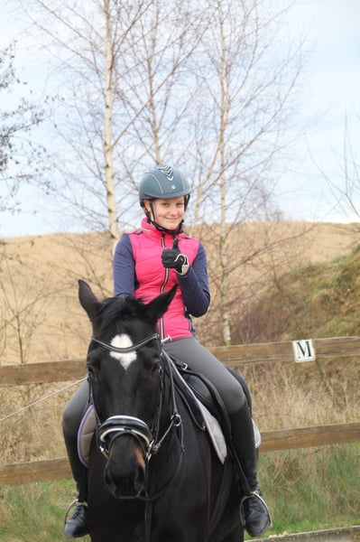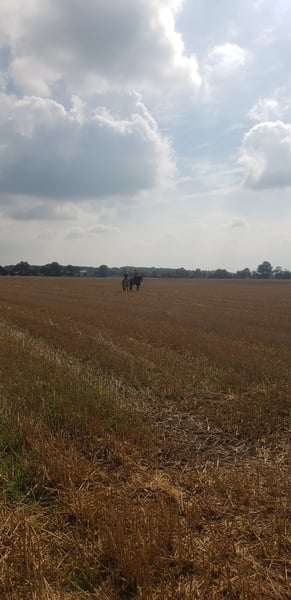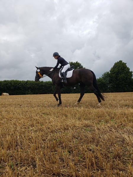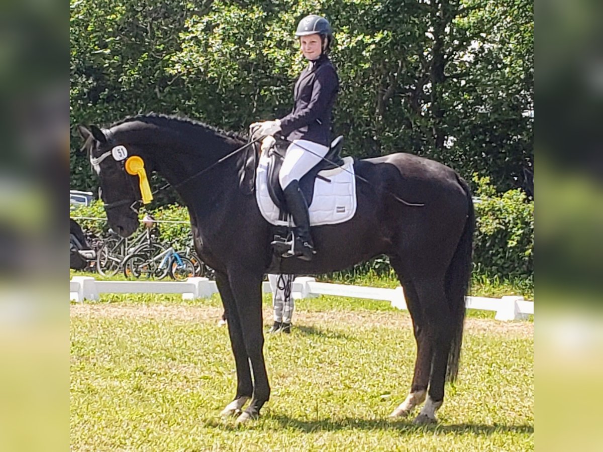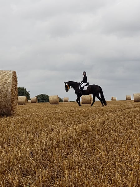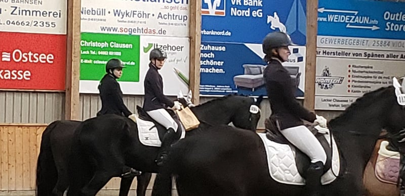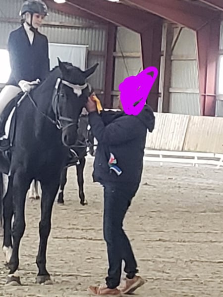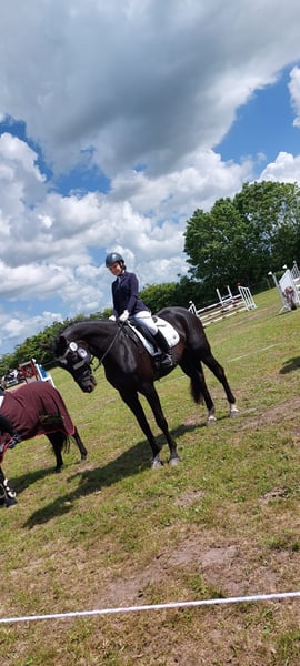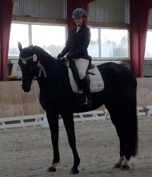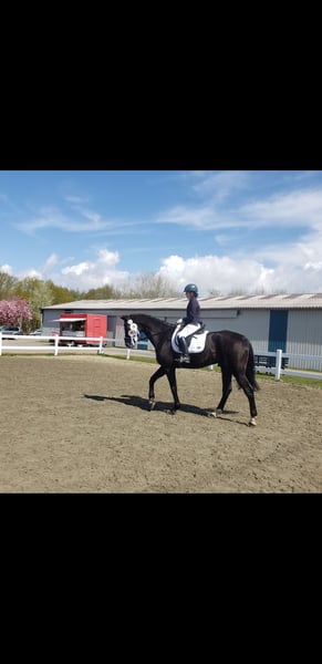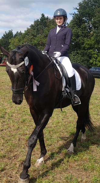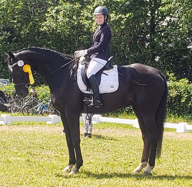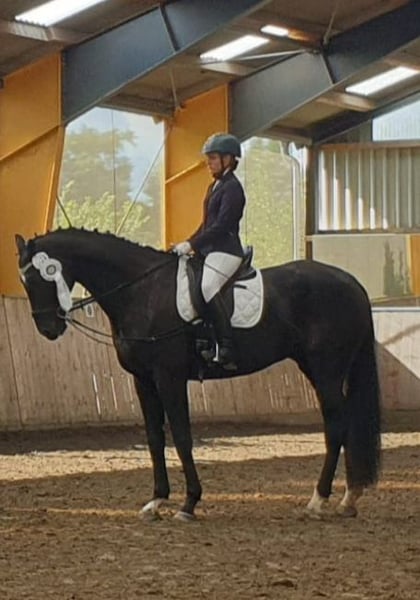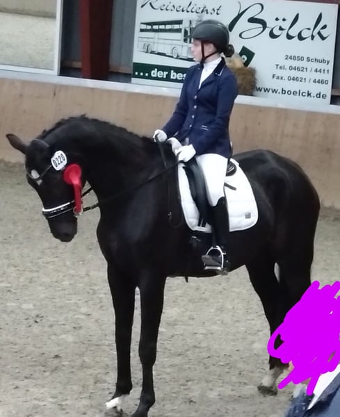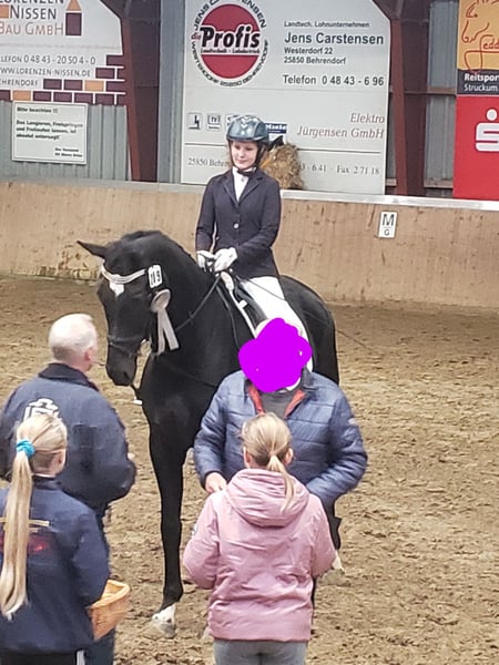 Dario is a wonderful dressage horse. Our daughter has mastered the journey from rider competitions with draw reins to her first Dressage Rider L level with him. He has carried her through the Riding Badge RA 5 and RA 4. They have also completed various team dressage tests together. Under saddle, he is absolutely reliable and calm. The hustle and bustle of competitions does not impress him. Due to his good training up to class M, my daughter was able to learn many lessons. These can be easily called upon with the correct aids. He is not a self-starter but wants to be ridden. We have not further promoted jumping and have focused more on gymnastic work. He has participated in some jumping competitions and small courses in training according to WBO standards. When out riding, he requires a confident rider. - Shoed on all four hooves - Fully vaccinated for competitions - Familiar with open stable and box with paddock - He is in a mixed herd, but we can also imagine him very well in a gelding herd - Teeth regularly checked - He needs routines and a certain level of confidence from the handler - Ideal horse for a parent-child duo - Due to his height, the rider should be over 1.65 m tall - A gem for dressage enthusiasts from A-M or for a learning rider transitioning from WBO to LPO