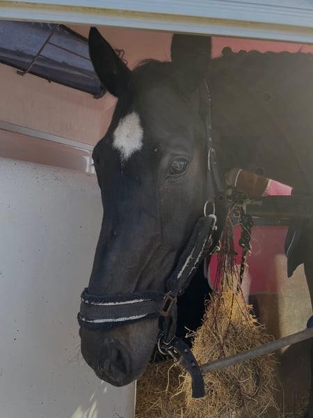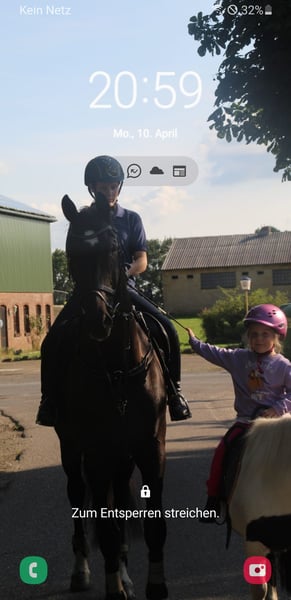 Dario è un meraviglioso cavallo da dressage. Nostra figlia ha percorso con lui il cammino dalla competizione per cavalieri con ausili fino al primo livello di dressage L. Lui l'ha sostenuta nel conseguimento del brevetto RA 5 e RA 4. Hanno anche partecipato a diverse gare di dressage a squadre. Sella è assolutamente affidabile e tranquillo. Il trambusto dei tornei non lo ha impressionato. Grazie alla sua buona formazione fino alla classe M, nostra figlia ha potuto imparare molte lezioni. Queste sono facilmente richiamabili con l'uso corretto delle gambe. Non è un cavallo che si guida da solo, ma ha bisogno di essere montato. Non abbiamo ulteriormente incentivato il salto, ma ci siamo concentrati maggiormente sulla ginnastica. Ha partecipato a diversi salti WBO e piccoli percorsi durante l'allenamento. Durante le passeggiate, ha bisogno di un cavaliere sicuro. - Ferrato 4 volte - Vaccinato per i tornei - Conosce il paddock e la box in stalla aperta - Si trova in un branco misto, ma possiamo immaginarlo molto bene anche in un branco di gelding - Denti controllati regolarmente - Ha bisogno di routine e di una certa sicurezza da parte della persona che lo conduce - Cavallo ideale per un abbinamento genitore/figlio - A causa della sua altezza, il cavaliere dovrebbe essere alto più di 1,65 m - Un gioiello per gli appassionati di dressage A-M o anche per un cavaliere in fase di apprendimento da WBO a LPO - Posto prima del prezzo