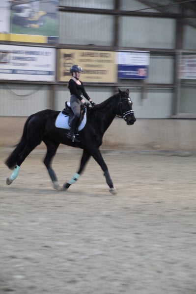 Dario to wspaniały koń do ujeżdżenia. Nasza córka przeszła z nim drogę od zawodów jeździeckich z uwiązami do pierwszego poziomu ujeżdżenia L. Niósł ją przez odznaki jeździeckie RA 5 i RA 4. Ukończyli również różne drużynowe zawody ujeżdżeniowe. Pod siodłem jest absolutnie niezawodny i spokojny. Zgiełk turniejowy nie robi na nim wrażenia. Dzięki dobrej edukacji do klasy M, moja córka mogła nauczyć się wielu lekcji. Są one łatwe do przywołania przy odpowiednim użyciu pomocy. Nie jest to koń, który sam się prowadzi, lecz wymaga aktywnego jeźdźca. Nie rozwijaliśmy skoków, skupiliśmy się raczej na gymnastykę. W WBO brał udział w kilku skokach WB i małych parkurach w treningu. Podczas jazdy w terenie potrzebuje pewnego jeźdźca. - 4x podkute - regularnie szczepiony na zawody - zna stajnię otwartą i boks z padokiem - przebywa w mieszanej grupie, jednak dobrze wyobrażamy sobie, że mógłby być również w grupie wałachów - zęby regularnie kontrolowane - w obcowaniu wymaga rutyny i pewności ze strony prowadzącego - idealny koń dla pary matka/ojciec-dziecko - ze względu na swój wzrost jeździec powinien mieć ponad 1,65 m - prawdziwy skarb dla miłośnika ujeżdżenia A-M lub dla uczącego się jeźdźca od WBO do LPO