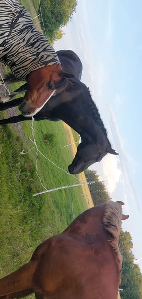 Dario est un merveilleux cheval de dressage. Notre fille a maîtrisé avec lui le chemin de la compétition de cavalier avec des rênes fixes jusqu'à son premier niveau de dressage L. Il l'a accompagnée à travers les examens de cavalier RA 5 et RA 4. Ils ont également participé à diverses épreuves de dressage par équipe. Sous la selle, il est absolument fiable et calme. Le tumulte des compétitions ne l'a pas impressionné. Grâce à sa bonne éducation jusqu'à la classe M, ma fille a pu apprendre de nombreuses leçons. Celles-ci sont facilement accessibles avec une aide correcte. Ce n'est pas un cheval qui se pilote tout seul, il a besoin d'être monté. Nous n'avons pas encouragé le saut davantage et avons plutôt travaillé de manière gymnique. Il a participé à quelques petites épreuves de saut en WBO et a sauté de petits parcours à l'entraînement. Lors des sorties, il a besoin d'un cavalier sûr. - 4 fers - vacciné pour les compétitions - connaît le box et le paddock en stabulation libre - il est dans un troupeau mixte, mais nous pouvons aussi très bien l'imaginer dans un troupeau de hongres - dents contrôlées régulièrement - il a besoin de routines et d'une certaine sécurité de la part de la personne qui le mène - cheval idéal pour un duo parent-enfant - en raison de sa taille, le cavalier devrait mesurer plus de 1,65 m - un bijou pour les passionnés de dressage A-M ou pour un cavalier apprenant de WBO à LPO - place avant prix