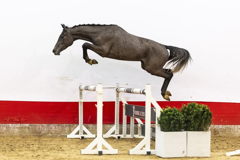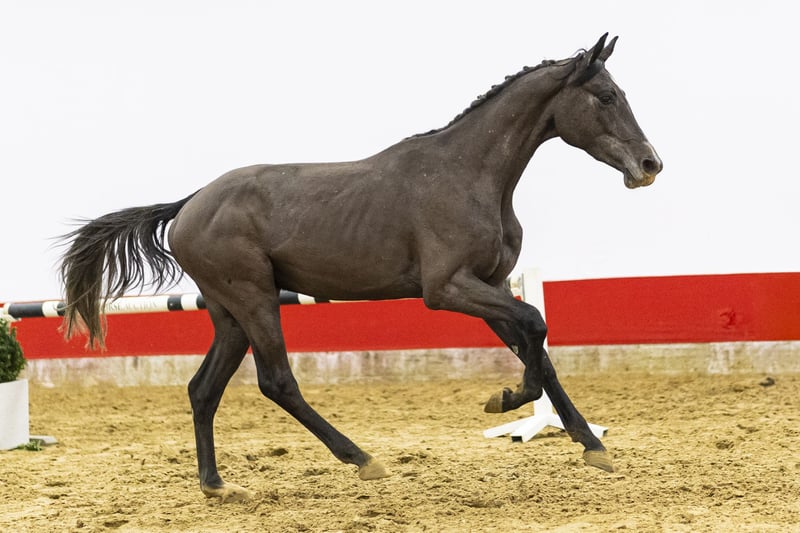 A light-footed horse that is quick off the ground. Modern in appearance and long-legged in type. He shows an athletic model with good balance and a fresh expression. A sporty type with natural lightness and an easy way of jumping. Sire Comilfo Plus Z (1.45m) is a son of Comme il Faut (1.60m Grand Prix) out of a Balou du Rouet damline. Comme il Faut, by Cornet Obolensky (1.60m) out of Ratina Z (1.60m), is one of the most influential sires of modern top jumpers. Comilfo Plus Z produced Landon (1.65m), Cordis Totalis Z (1.60m) and Comanchero de Poteau Z (1.55m). Dam Jara (by Clarimo 1.60m) descends from the strong Holsteiner family of M-Corrida (by Caletto I). Second dam M-Corrida produced Henriette P (1.50m) and Call Me Cabitt S (1.40m). Further in the damline we find several 1.50m–1.60m performers such as Countess G (1.60m), Cabochon (1.60m, approved Holstein), Quax 42 (1.50m), Capuccino 11 (1.50m), Calderon (1.50m), Hazel Girl (1.50m), Jubilate (1.50m) and multiple 1.40m–1.45m horses including Fashion TCS (1.45m) and Icalverdi de Ceia (1.45m). Approved stallions such as North Pole N (KWPN) also originate from this line. A damline with proven 1.45m–1.60m performance.