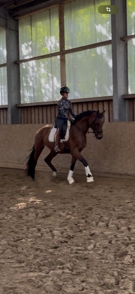Zazou – 3-jähriger Wallach von Zuperman x Fürstenball Bei uns geboren und artgerecht aufgewachsen, beginnt Zazou nun behutsam mit seiner Ausbildung unter dem Sattel und zeigt sich dabei stets lernwillig, brav und angenehm im Umgang. Zazou hat aktuell eine Größe von 1,64 und ist somit ein nettes Damen Pferd oder für Umsteiger von Pony auf Großpferd interessant. Trotz seiner Größe bewegt er sich dennoch großrahmig und überzeugt mit drei überdurchschnittlichen Grundgangarten – besonders hervorzuheben ist sein raumgreifender, taktsicherer Schritt. Die dynamische Hinterhand und seine auffallend hohe Rittigkeit lassen auf eine vielversprechende Zukunft im Dressursport schließen. Zazou steht noch am Anfang seiner reiterlichen Laufbahn und eignet sich hervorragend für Reiter*innen, die sich ein talentiertes Nachwuchspferd mit Perspektive sichern möchten. Er ist: • Verladefromm • Schmiedefromm und regelmäßig dem Hufschmied vorgestellt • Regelmäßig entwurmt • Zahnkontrolle wurde durchgeführt Aktuelle Röntgenbilder mit Hals und Rücken ohne Befund liegen vor. Ein vielversprechender Nachwuchs für Sport oder gehobene Freizeit – aus bestem Hause und mit solider Grundausbildung.