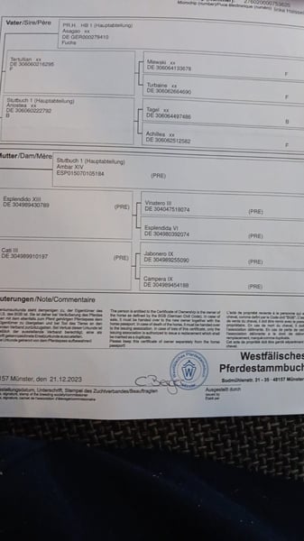 Typvoller Westfale von Asagao xx. Vielseitig & vielversprechend Zum Verkauf steht ein 2 1/2-jähriger brauner Westfale (Asagao xx × PRE-Stute) mit tollem Charakter und spannender Abstammung. Der junge Kerl ist spät geboren (19.6.2023) und überzeugt durch ein harmonisches Exterieur, korrektes Fundament und einen neugierigen, freundlichen Charakter. Vater Asagao xx ist ein leistungsgeprüftes Vollblut, zugelassen für mehrere Zuchtverbände. Er war erfolgreich in Geländepferdeprüfungen bis L und Springen bis M, bekannt für Rittigkeit, Ausdauer und Leistungsbereitschaft. Seine Nachkommen sind sportlich, typvoll und vielseitig einsetzbar. Mutter PRE-Stute bringt Ausdruck, gute Bewegungen und einen ausgeglichenen Charakter ein – eine gelungene Kombination aus Kraft, Eleganz und Coolness. Eckdaten: · Alter: 2 1/2 Jahre · Farbe: Braun · Stockmaß: ca. 160 cm (im Wachstum) · Ausbildungsstand: roh, halfterführig, aufgrund seines Alters noch nicht gearbeitet · Einsatzgebiet: Vielseitigkeit, Dressur, Springen , Freizeit, Distanzsport Ein Rohdiamant mit großem Potenzial für den Sport. Bereit, seinen Menschen zu finden.