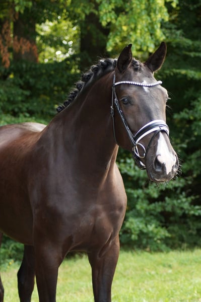 Diego is a 3-year-old gelding by Painted Black x Lord Leopold. He is equipped with three very good gaits, as well as a pronounced development of swing and impressive elasticity. His work ethic is also impeccable. His movements are large, ground-covering, and always in rhythm. Diego fills the arena with his natural presence and charisma. A promising youngster for riders looking towards competitive dressage - talented, modern, and with excellent prerequisites for the big arena.