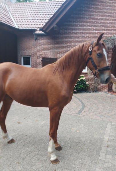Zum Verkauf steht ein jungerr Fuchswallach direkt aus Züchterhand. Faludi sreht noch ganz am Anfang seiner Ausbildung. Er besticht durch sein angenehmes Temperament und sein charmantes und ausgeglichenen Wesen. Der junge Wallach zeigt bereits viel Talent und Lernbereitschaft. Faludi entspringt einem international sporterfolgreichem Mutterstamm mit Platzierungen bis hin zu schweren Klassen im Dressurviereck und Springparcour.. Er eignet sich hervorragend für den Dressursport und ist bereit sich gemeinsam mit seinem neuen Besitzer weiterzuentwickeln.