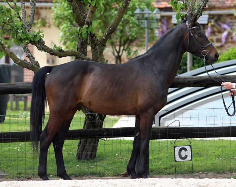 Cheval de dressage à vendre – Hongre Westphalien 2022 – Franziskus x Santiana x Stoiber – Avenir sport Dressage. Ferdinant est un hongre Westphalien né en 2022, toisant actuellement environ 1,62 m. Il présente un modèle moderne, compact et bien proportionné, avec une orientation naturelle vers le dressage. Issu du très recherché Franziskus, associé à des lignées solides (Santiana x Stoiber), il bénéficie d’un pedigree reconnu pour la qualité de locomotion, l’équilibre et le potentiel sportif. Doté d’un tempérament énergique avec du sang, Ferdinant K se distingue par sa souplesse, son équilibre naturel et sa réactivité. Il offre une locomotion expressive et dynamique, avec une vraie présence, laissant entrevoir un potentiel intéressant pour un projet sportif ambitieux. Fraîchement débourré selon la méthode Blondeau, il a été mis au travail dans le respect de son âge et de sa progression. Il évolue actuellement sur ses premières bases, avec une bonne compréhension du cavalier et une attitude volontaire. Encore en phase de formation, il nécessite un cavalier expérimenté capable de canaliser son énergie et de l’accompagner dans sa construction. Tempérament & quotidien Cheval agréable à gérer au quotidien : Facile aux soins Facile à la tonte Sort seul ou accompagné Bon comportement général Il présente un mental volontaire avec du sang, demandant un encadrement adapté pour exprimer pleinement son potentiel. Pour quel projet ? Ferdinant K conviendra particulièrement : à un cavalier expérimenté souhaitant former un jeune cheval avec du potentiel à un professionnel ou amateur confirmé visant un projet dressage évolutif à un projet orienté sport avec objectif de valorisation à moyen terme Ses points forts Origines reconnues : Franziskus x Santiana x Stoiber Jeune cheval moderne avec modèle sport Souplesse, énergie et équilibre naturel Débourrage récent dans le respect du cheval Mental volontaire avec du sang Cheval sain avec dossier vétérinaire complet (radios membres, dos et cervicales) Facile au quotidien
