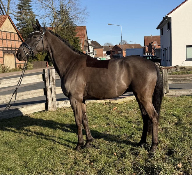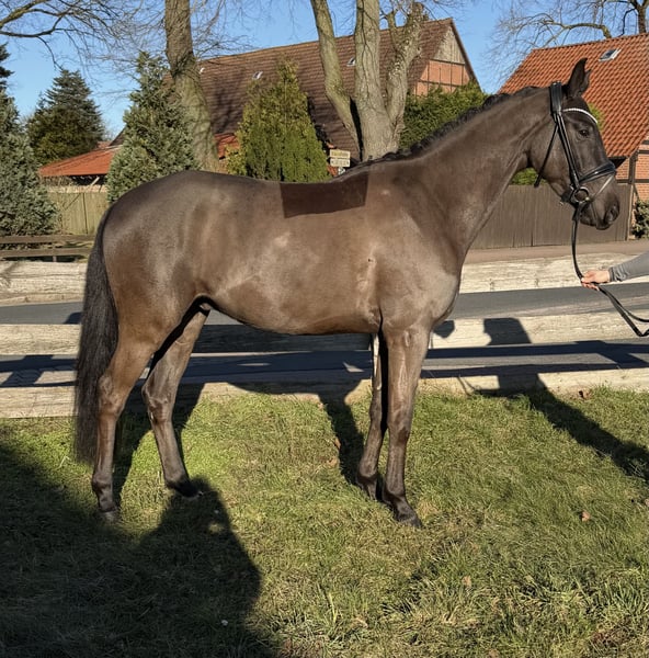 Verkaufe 4 jährigen schwarzbrauner Westfalen Wallach (aktuell ca. 1,63 m) aus liebevoller Privatzucht, abstammend von Quarterman II x Coronas. Neben drei guten GGA überzeugt er vor allem durch seinen außergewöhnlich guten Charakter: menschenbezogen, ausgeglichen, klar im Kopf und jederzeit kooperativ. Altersgerecht angeritten, sehr rittig und lernwillig, zeigt er auch beim Freispringen Vermögen und Übersicht. Ein aktueller TÜV liegt vor und kann bei ernsthaftem Interesse eingesehen werden. Ein Nachwuchspferd mit Qualität, Herz und Perspektive.