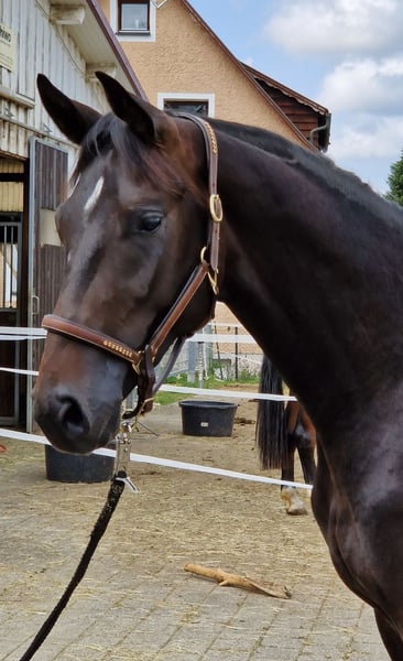 Dieser junge Wallach wurde schonend angeritten und begeistert mit seiner positiven Arbeitseinstellung. Er zeigt sich ehrgeizig, motiviert und stets bemüht, alles richtig zu machen. Unter dem Sattel überzeugt er mit angenehmer Rittigkeit, einem guten Vorwärts und viel Freude an der täglichen Arbeit – ein Pferd, das seinem Reiter von Anfang an ein gutes Gefühl vermittelt. Seine Bewegungen sind locker, natürlich und taktsicher. Dabei bleibt er aufmerksam und nimmt neue Aufgaben willig an. Natürlich steht er altersbedingt noch am Beginn seiner Ausbildung, bringt jedoch hervorragende Anlagen für eine erfolgreiche sportliche Entwicklung mit. Ein altersgerechter Start in Reitpferde- und Dressurpferdeprüfungen in der kommenden Saison ist problemlos vorstellbar. Auch im täglichen Handling zeigt er sich unkompliziert, freundlich und ausgeglichen. Er ist: • brav beim Schmied und beim Verladen • vorne beschlagen • regelmäßig entwurmt und geimpft • tierärztlich untersucht (TÜV ohne Befund) Für seine weitere Förderung wünschen wir uns erfahrene Reiter mit Gefühl für junge Pferde, die ihn in Ruhe und mit System weiter ausbilden. Perspektivisch ist er durchaus auch für ambitionierte Amateure interessant und besonders spannend für Ponyreiter, die auf ein Großpferd umsteigen möchten. Ein eleganter, sympathischer Youngster mit viel Potenzial und einer Einstellung, die einfach Freude macht – ein Pferd mit Zukunft. Bei ernsthaftem Interesse gerne melden unter 📞 01725624754