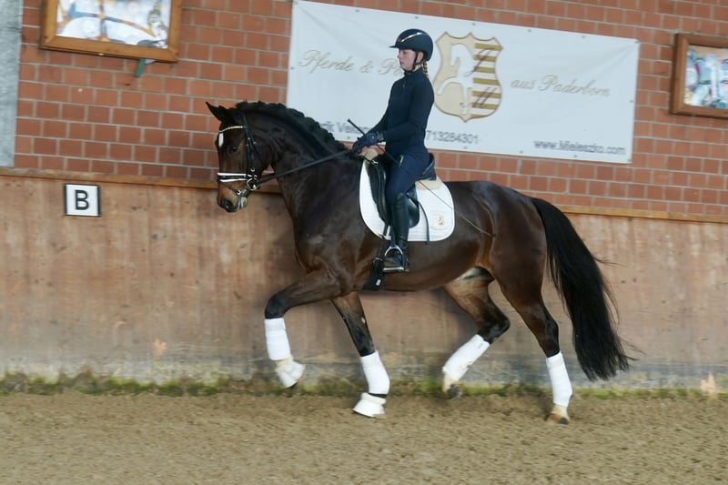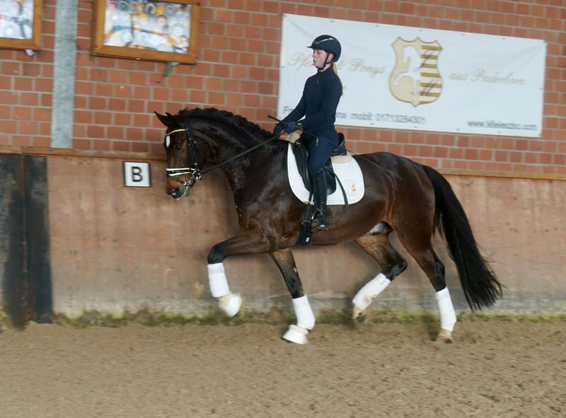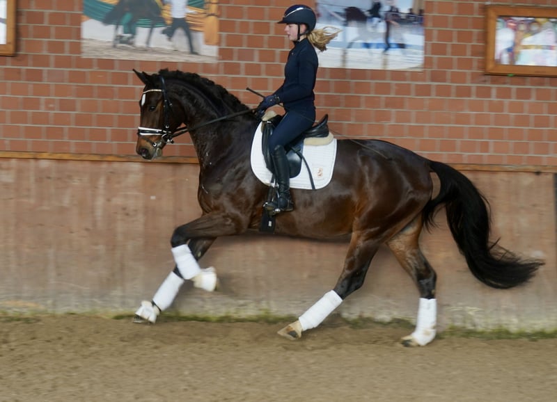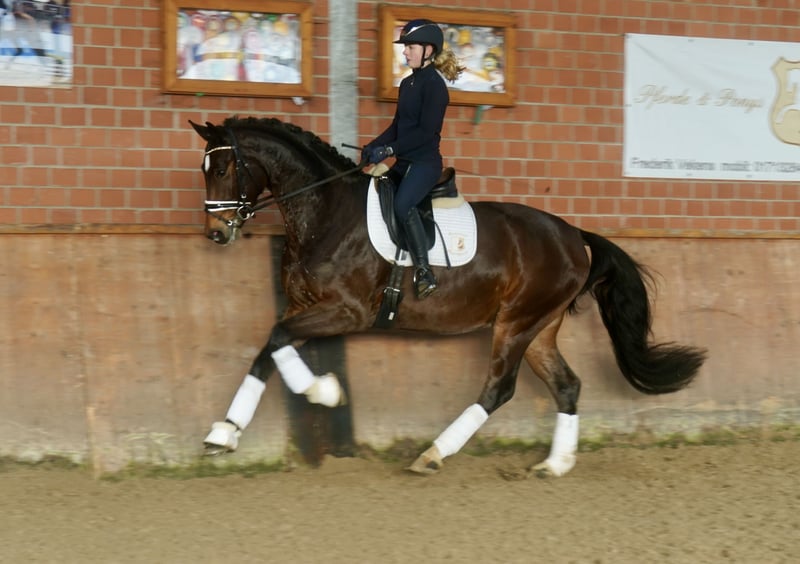 Verkaufe hochveranlagten Westfalen-Wallach, geb. 2022, mit beeindruckendem Stockmaß von 168 cm. Der braune Wallach ist ideal für den Dressursport geeignet und zeigt viel Talent sowie eine vielversprechende Grundausbildung. Er ist freundlich im Umgang und besitzt eine angenehme Charakteristik. Perfekt für ambitionierte Reiter, die einen jungen, vielseitigen Partner suchen. Er entspringt einem Holsteiner Mutterstamm, gespickt mit viel Springhenetik. Ablauf & Kraft machen diesen genmix ein Interessant. Bei Interesse stehe ich gerne für weitere Informationen und eine Besichtigung zur Verfügung.