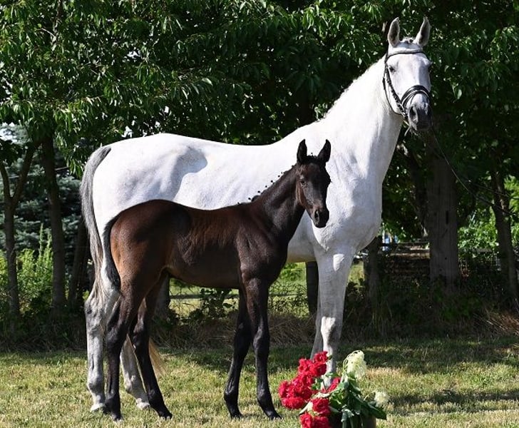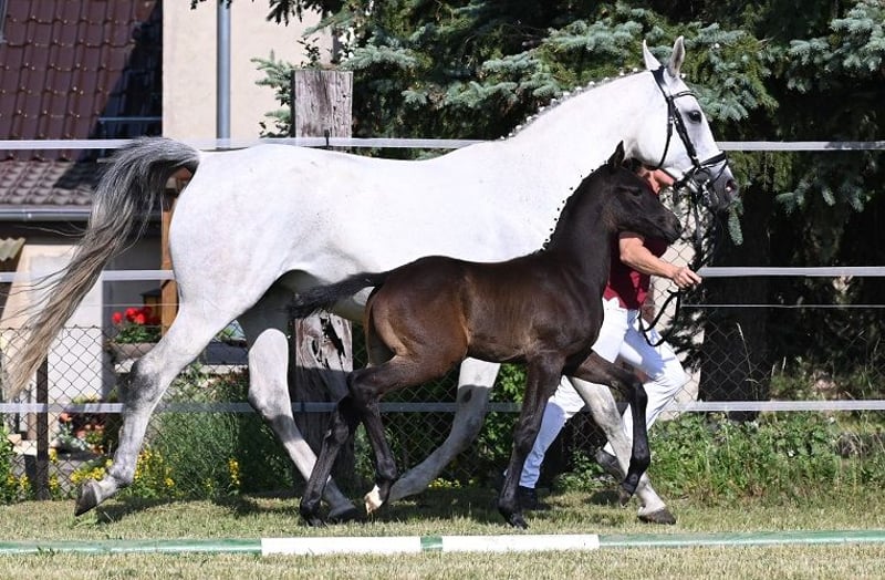 Indiamo is a large gelding (3 years old, dark gray) and is a descendant of the Trakehner Invincible Sir. The Thoroughbred Arabian stallion Dschehim ox provides a valuable blood connection through the dam's side, which makes the pedigree of this colt highly interesting. Furthermore, on the dam's side, we find Larome (Landgraf - Roman (by Ramzes xx) - Manometer xx) - Wanderer (Wagner (by Wendekreis) - Glander) - Pik Koenig. The mare line includes dressage and show jumping horses, as well as licensed stallions. The mother is a state premium mare and was third place in the foal championship in Neustadt/Dosse for dressage-focused filly foals. If you are interested, please contact us only by phone or via WhatsApp or SMS at the number 0049 1725488966.