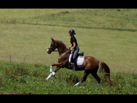 Enrico trägt bedeutende Gene in sich. Sein Vater Escamillo war Vizeweltmeister und klettert gerade die Erfolgsleiter über S* und S** herauf. Enricos Mutter machte selber eine Stutenleistungsprüfung mit 8,21 und trägt mit Florencio einen Doppelweltmeister im Pedigree. Diese Gene spiegeln sich auch in Enrico wieder. Ähnlich wie bei seinen Geschwistern Destino und For Infinity ist sein Auftreten erst etwas zurückhaltend. Sobald er weiß, was tun ist, beginnt der Fliegeralarm. Das bei Reitern sehr beliebte Florencioblut sorgt hier für ein kraftvoll, dynamisches Abfussen und wird durch die beeindruckende, elastische Trabmechanik des Escamillo verstärkt. Das schöne Bergauf und die gewaltige Schulterfreiheit demonstrieren auch im Galopp seine besondere Qualität. Mit guter Körperhaltung und auffallendem Rahmen ausgestattet, fällt es ihm schon früh leicht mit seiner Balance zu spielen. Auffallend ist auch seine gute Anlehnung, die er bereits nach wenigen Tagen unter dem Sattel besaß. Insgesamt brilliert dieser Youngster schon früh mit vielen Extras bei hervorragendem Interieur, welches an Westfalens leistungsstarke E-Linie erinnert. Ein guter Tüv aus August 2024 liegt vor.