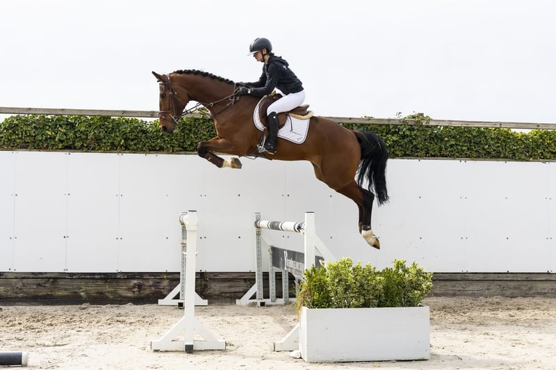Big amateur horse that is easy to ride. Calm character and suitable for multiple disciplines. Nicely built uphill with possibilities towards equitation. Sire Jasper – 1.60m level. International showjumper from the line of Heartbreaker and Nimmerdor. Dam Cavalotti – no sport results. Damline Granddam Valotti – 1.40m. From this line come: Valotti – 1.40m Thursday – 1.30m Additionally multiple horses at 1.30m level. Further in the line strong influences of For Pleasure – 1.60m and Numero Uno – 1.55m.
