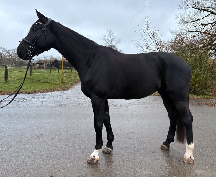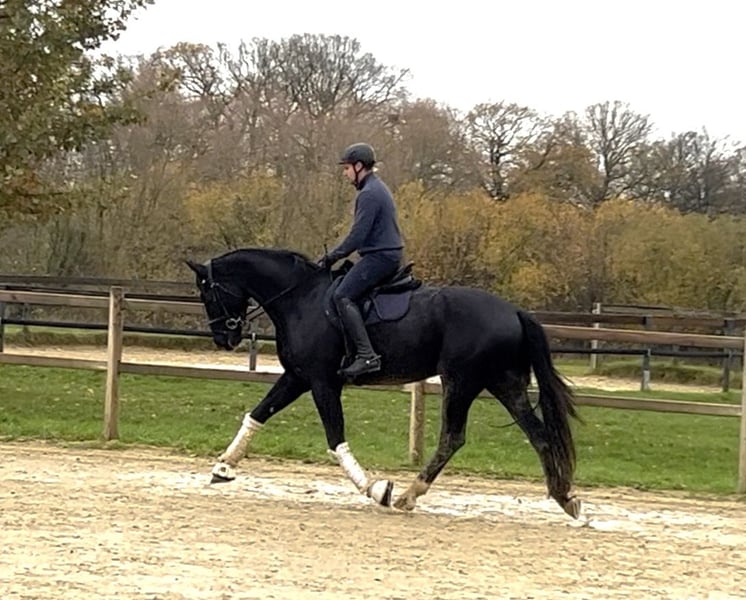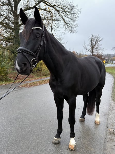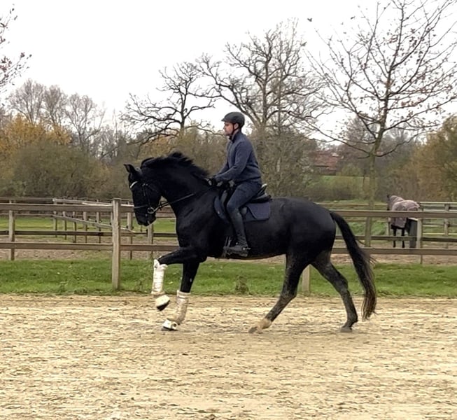 ✨ Duke of Devon – Ein charakterstarker 4-jähriger Wallach mit Größe & Potenzial ✨ Rasse: Warmblut/ Westfale Geschlecht: Wallach Alter: 4 Jahre (aus April 2021) Farbe: Schwarzbraun Stockmaß: ca. 178 cm Duke ist ein beeindruckender, schwarzbrauner Wallach, abstammend von Diamond Deluxe x Rittmeister, mit viel Präsenz und einem absolut zuverlässigen, braven Charakter. Als Fohlen gekauft und seitdem behutsam sowie professionell gefördert, zeigt er sich stets kooperativ und lernbereit. Ausbildung & Können: Schonend mit 3,5 Jahren angeritten Aktuell auf Dressurpferde A-Niveau Springt kleinen Parcours Geländesicher, allein und in der Gruppe Kindergeeignet an der Longe Verladefromm und unkompliziert im Transport Kennt Auswärtstraining und bleibt auch fremden Umgebungen gegenüber gelassen Offenstall und Boxhaltung vertraut Umgang & Temperament: Duke ist im täglichen Umgang ein absoluter Schatz: brav, menschenbezogen, ehrlich und nervenstark – ein Pferd, das immer gefallen möchte und sich sehr leicht händeln lässt. Geeignet für: Dressur-orientierte Reiter (Schwerpunkt) Vereinspferd durch sein ausgeglichenes Wesen Voltigierpferd aufgrund seiner Größe, Ruhe und Gelassenheit Ambitionierte Turnier- oder Freizeitreiter Reiter, die ein großes, verlässliches Nachwuchspferd suchen Grund des Verkaufs: Der Verkauf erfolgt nur, weil Duke aufgrund eines leichten tierärztlichen Befunds nicht den sportlichen Ambitionen der Besitzerin entspricht. Für ein angepasstes Einsatzgebiet ist er weiterhin uneingeschränkt nutzbar. Details werden transparent im persönlichen Gespräch erläutert. Ein ehrlicher, talentierter Youngster mit bestem Charakter – bereit für seinen neuen Wirkungskreis.