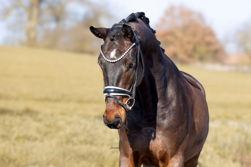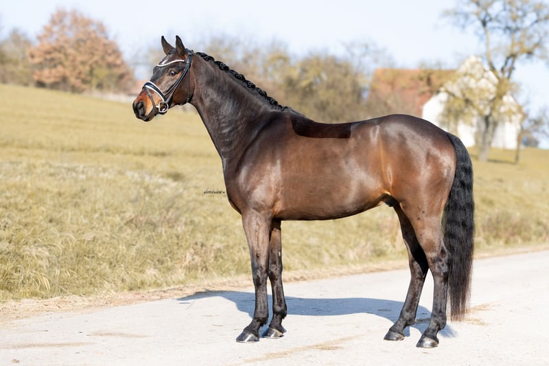 Zum Verkauf steht ein bildhübscher, im Hengsttyp stehender Wallach vom Ausnahmehengst Jovian, angepaart an eine Fürstenball-Stute aus bestem Mutterstamm! Just can‘t get enough war als Hengst in Westfalen gehört und wurde im Frühjahr 2024 angeritten! Nach einem Sieg bei seinem ersten Turnierstart durfte er nach dem kastrieren den Sommer 3-jährig nochmals auf der Wiese verbringen! Im Frühjahr 2025 wurde er wieder in Arbeit genommen & ist mittlerweile Dressurpferde L fertig! Er war bei jedem seiner Starts in Reitpferde und Dressurpferde A platziert, ist ein absolutes Verlasspferd, immer brav, zuverlässig, hat keinerlei Unarten und war nie verletzt! Er ist sehr schön zu reiten, besitzt viel Talent zur Versammlung und lernt schnell neue Lektionen! Außerdem macht er brav kleinere Sprünge unter dem Sattel, geht sehr brav alleine und in der Gruppe ins Gelände, ist unkompliziert beim Hufschmied, dem Verladen und dem Tierarzt. Er ist in Familienbesitz und seine Besitzer geben ihn schweren Herzens aus privaten Gründen ab. Er eignet sich hervorragend als Mädchen- oder Familienpferd, da er absolut zuverlässig und freundlich ist und sich trotz seines Alters schon sehr abgeklärt in allen Situationen zeigt! Die Röntgenbilder der Körung (Dezember 2023) sind vorhanden inkl. Rücken und ohne Befund. Anfragen bitte per WhatsApp: 0170/2779570