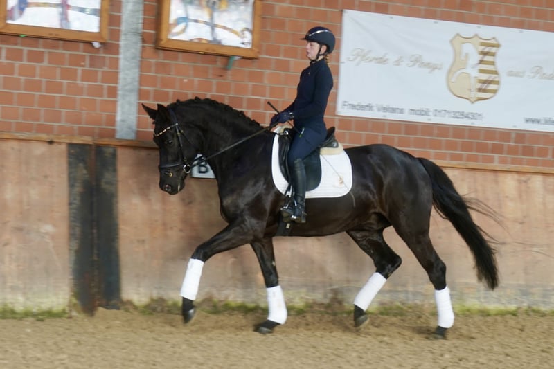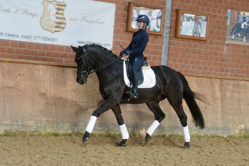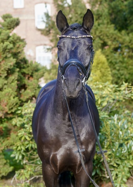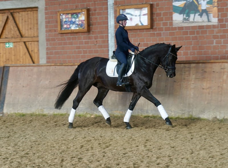 Beautiful Westphalian gelding, born in 2021, in an elegant black coat. Standing at 16.1 hands, he is ideally suited for dressage. The young gelding impresses with his refined appearance and promising talent in the dressage arena. He is well-started under saddle and ready for further development. He shows potential for the future. If interested, I am happy to provide more information and arrange a viewing.