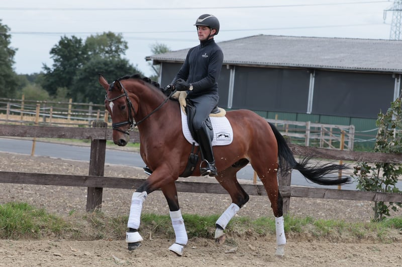 Be the One by Benicio x Sandro Hit impresses with his elegant appearance and pleasant temperament. He handled his first competition appearances with confidence, and is already placed in dressage horse classes at the A level. Perfect for ambitious riders seeking a promising young horse. If interested, I am happy to provide further information.