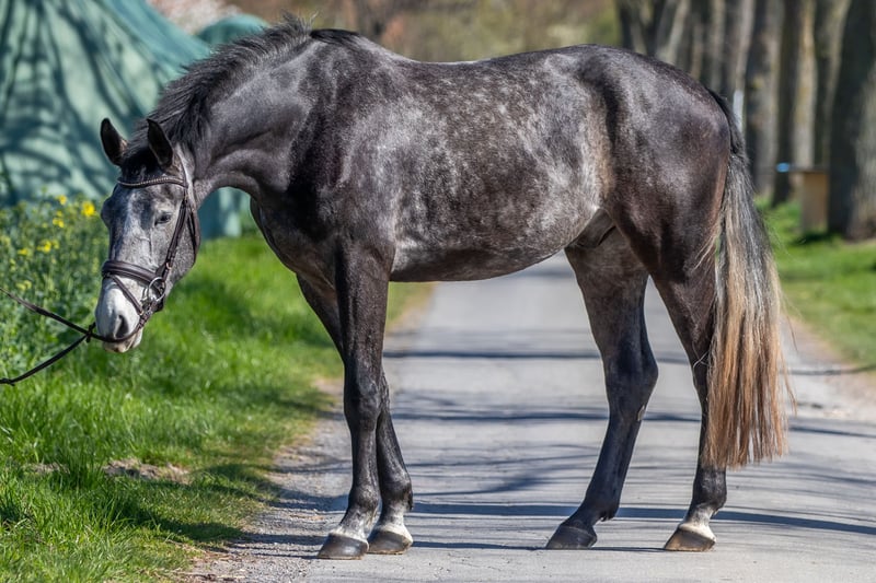 Stallone di 5 anni, castrone grigio con carattere distintivo