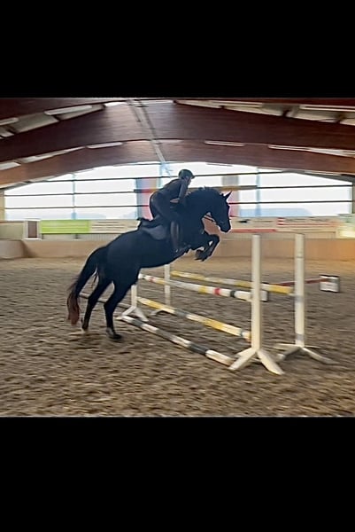 ✨ Duke of Devon – Un cheval de 4 ans au caractère affirmé, avec de la taille et du potentiel ✨ Race : Selle allemand / Westphalien Sexe : Hongre Âge : 4 ans (né en avril 2021) Couleur : Noir baie Taille au garrot : environ 178 cm Duke est un hongre impressionnant, de couleur noir baie, descendant de Diamond Deluxe x Rittmeister, doté d'une forte présence et d’un tempérament parfaitement fiable et docile. Acquis en tant que poulain, il a été élevé avec soin et professionnalisme, et se montre toujours coopératif et volontaire à l’apprentissage. Formation & compétences : - Débourré en douceur à 3,5 ans - Actuellement en dressage niveau A - Saute de petits parcours - S’entend en terrain varié, seul ou en groupe - Adapté au travail à la longe avec des enfants - Facile au débourrage et au transport, ne fait pas de difficultés à la mise en caisse - Connaît l’entraînement en extérieur et reste calme dans des environnements inconnus - Familiarisé avec le box et le pâturage en paddock ouvert Comportement & tempérament : Duke est un véritable trésor dans la vie quotidienne : calme, proche de l’humain, sincère et doté d’un grand sang-froid – un cheval qui souhaite toujours faire plaisir et qui se monte très facilement. Convient pour : - Cavalier orienté dressage (objectif principal) - Cheval de club grâce à son tempérament équilibré - Cheval de voltige en raison de sa taille, de sa tranquillité et de sa sérénité - Cavaliers ambitieux en compétition ou en loisir - Cavalier recherchant un jeune cheval fiable et de grande envergure Motif de la vente : La vente est uniquement motivée par le fait que Duke, en raison d’un léger diagnostic vétérinaire, ne correspond plus aux ambitions sportives de la propriétaire. Il reste cependant parfaitement utilisable dans un domaine adapté. Les détails seront expliqués en toute transparence lors d’un entretien personnel. Un jeune cheval talentueux, sincère et au caractère exceptionnel – prêt à intégrer son nouveau cercle de propriétaires.
