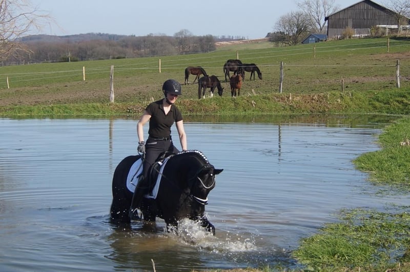 Fiorello is an exceptionally handsome and charming dressage horse, exhibiting a level of rideability and willingness to work that is quite rare. He combines the gentle nature and good contact of the Fürstenball son Finest with the courage and performance drive of Arpeggio. In his third generation, his dam is the mare Danny Doreen, who has already produced a licensed stallion with Let de Lember. She contributes the deep hock angulation necessary for good balance and power development. His three basic gaits are equally well-developed. His walk is very expressive with a secure overstep. In trot, he has a strong hindleg with excellent weight-bearing and good shoulder freedom. Thanks to his excellent conformation, he is easy to collect, which is especially beneficial for less experienced riders. The same applies to his canter: he demonstrates a very uphill canter, always attentive to the rider. Overall, Fiorello can be recommended to anyone. If someone is looking for a relatively young horse, he is the perfect choice. With him, there’s no need to get everything right immediately; he offers many opportunities and always maintains a cheerful attitude. A TÜV report without findings is available, valid until February 2026.