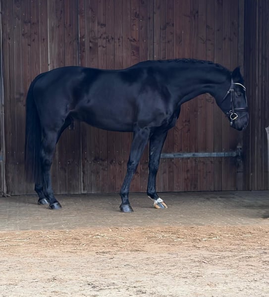 Zum Verkauf steht ein wunderschöner, schwarzbrauner Westfalen Wallach, geboren im Jahr 2020. Mit einem Stockmaß von 168 cm hat er die ideale Größe für ambitionierte Reiterinnen und Reiter, die auf der Suche nach einem zuverlässigen Dressurpferd sind. Der junge Wallach überzeugt durch seine imposanten Erscheinung, seine eleganten GGA und sein angenehmes Wesen. Er zeigt bereits viel Talent und Bereitschaft sich für das große Viereck weiter zu entwickeln. Mit einer Amateurin wurde er 2025 bereits siegreich und mit mehrfachen vorderen Platzierungen im A Bereich vorgestellt. Mittlerweile beherrscht er die Lektionen der Klasse L mit Leichtigkeit. Die fliegenden Wechsel wurden spielerisch hinzu genommen. Er wurde selbstverständlich regelmäßig geimpft, entwurmt und die Zähne wurden ebenfalls regelmäßig gemacht. Im Januar werden aktuelle Röntgenbilder gemacht. Er eignet sich sowohl für den ambitionierten Freizeitreiter als auch für den Turnierreiter, der einen zuverlässigen Partner sucht. Bei Interesse oder für weitere Informationen stehe ich Ihnen telefonisch unter der Nummer 0176/64615504 gerne zur Verfügung. E-Mails können nicht berücksichtigt werden!