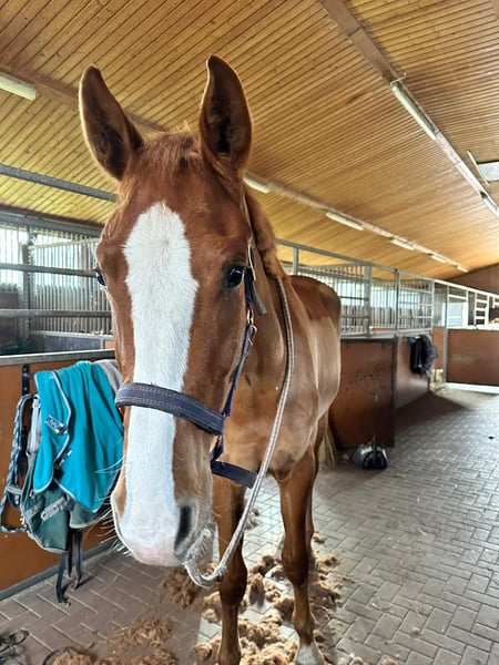 Ich verkaufe hier meinen großrahmigen, auffälligen 5-jährigen Wallach Bonheur du Coeur, genannt Baby. Er stammt von Bon Courage ab und überzeugt durch seine Größe, seine Rittigkeit und vor allem durch seinen außergewöhnlich lieben und unkomplizierten Charakter. Ich habe Baby selbst 3,5 jährig gekauft und schonend angeritten. Seine Ausbildung erfolgte altersgerecht und ohne Druck. Aktuell befindet er sich auf einem sehr soliden Dressurpferde-A-Niveau und zeigt sich jederzeit motiviert, lernbereit und brav. Stangen- und Cavalettiarbeit kennt er ebenso wie Ausritte, die er sowohl alleine als auch in der Gruppe zuverlässig meistert. Besonders hervorzuheben ist sein ruhiges, ausgeglichenes Wesen: Es haben bereits zwei Kinder im Schritt auf ihm voltigiert und verschiedene Übungen gemacht – Baby blieb dabei jederzeit ruhig, gelassen und verlässlich. Im täglichen Umgang ist er super lieb, verschmust und absolut unkompliziert. Er ist schmiede- und verladefromm, aktuell Barhufer (im Sommer vorn beschlagen gewesen) und wird regelmäßig von meiner Reitbeteiligung mitgeritten. Nach meiner Einschätzung bringt er sehr gute Perspektiven für höhere Klassen mit. Ein Pferd, mit dem man über den Winter in Ruhe weiter zusammenwachsen und nächstes Jahr sportlich durchstarten kann. Ein ehrlicher Nachwuchswallach mit Größe, Qualität und ganz viel Herz. Die Bilder sind aus den letzten Jahren und die Videos zeigen ihn 4 jährig das erste Mal auf dem Geländeplatz. ⸻ Besichtigung & Probereiten: 🐎 Probereiten: 30 € pro Pferd (max. 2 Reiter) 🎉 Feiertage: 50 € ❗ Absagen bitte mind. 24 Std. vorher, andernfalls wird der Termin in Rechnung gestellt. 🎬 Vorführen durch unsere Bereiter (ohne Probereiten/Bodenarbeit): 25 € pro Pferd 📩 Für die Terminbestätigung bitte vollständigen Namen und Adresse angeben. Ankaufsuntersuchungen jeder Art können gern durch Ihren oder unseren Tierarzt durchgeführt werden. Beim Transport ins neue Zuhause unterstütze ich ebenfalls sehr gerne. 📞 Anfragen bitte ausschließlich telefonisch: 0341 / 98995223 🕘 Mo – So 09:00 – 18:00 Uhr Weitere Verkaufspferde finden Sie unter: 🌐 www.deutsche-pferde-boerse.de Stockmaßangaben beruhen auf Schätzungen und sind keine zugesicherten Eigenschaften.