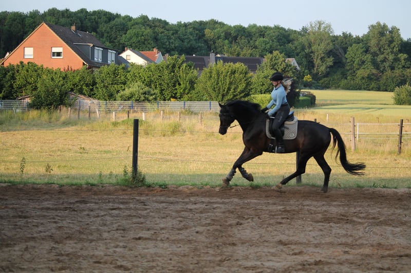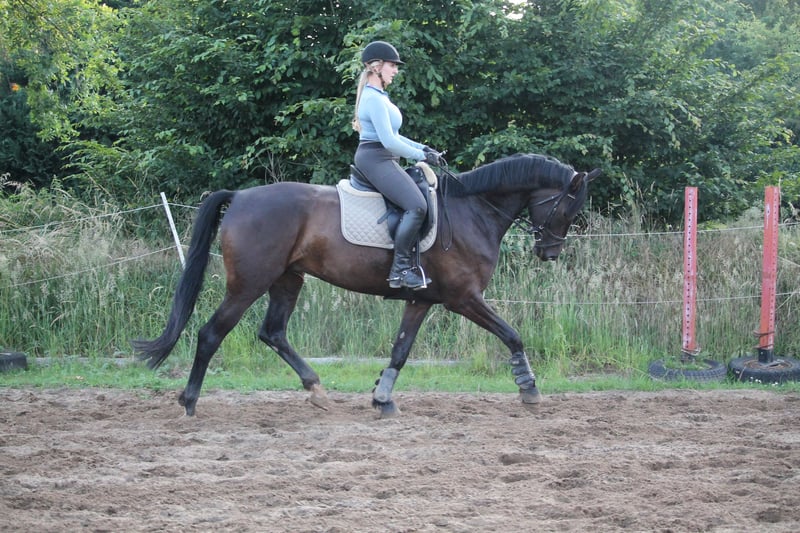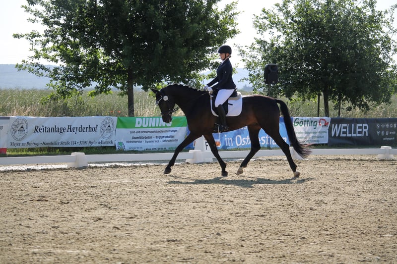 Zum Verkauf steht ein wunderschöner dunkelbrauner Westfalen-Wallach, geboren 2019, mit Stockmaß 174 cm. Er überzeugt mit sehr guter Rittigkeit, drei besonders schönen Grundgangarten und einem immer artigen, ehrlichen Charakter. Er ist gut erzogen, brav im Umgang und zeigt vielversprechende Ansätze in Dressur und Springen. Dank seines angenehmen Temperaments und seiner Lernbereitschaft eignet er sich ideal für ambitionierte Reiter, die ihn weiter fördern möchten. Der Wallach ist regelmäßig geimpft, entwurmt und hat gute Röntgenbilder. Ein talentierter Sportpartner, der sowohl im Training als auch auf Turnieren glänzen kann. Für weitere Informationen oder einen Besichtigungstermin stehe ich gerne zur Verfügung.