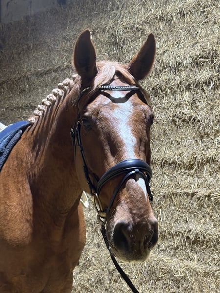 6-year-old Westphalian gelding Height: 1.80 m (approximately 16.2 hh) Very calm temperament, very easy to ride (without spurs or whip), straightforward to handle AKU (radiological examination) valid until December 19, 2025 Teeth checked and done in early December 2025 De-wormed also in early December 2025 Loading and farrier familiar Ideal as a Voltigier horse Sold directly by the breeder Please note: No replies to emails! If interested, contact exclusively by phone!