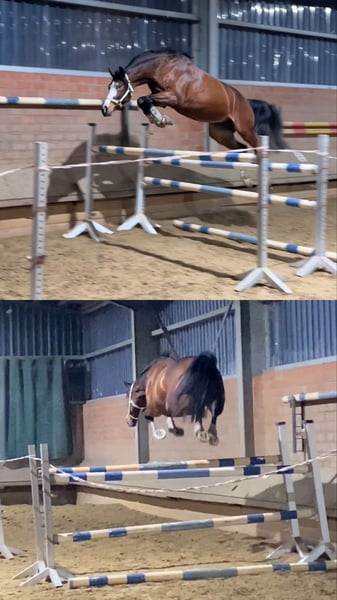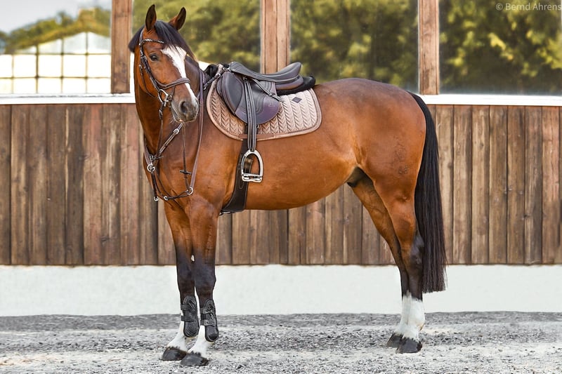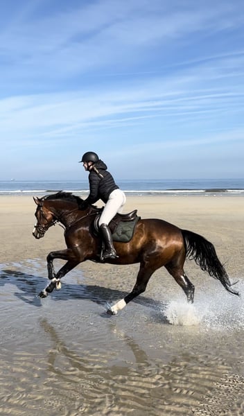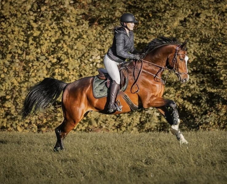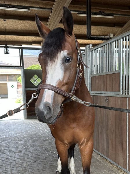 For sale is my seven-year-old gelding Hanley (by Hanley out of Balou du Rouet), approximately 16.1 hh tall – a stunning, sensitive, and intelligent partner with lots of charm, who always aims to please his rider. Hanley was carefully trained by myself and is currently at solid A-level in dressage, ready for L-level jumping. He has already been presented in show jumping at L** and has achieved placements in A** jumping competitions. He shows great enthusiasm for jumping, has excellent manners, a comfortable uphill canter, and a very good walk. Hanley is not suitable for beginners, but he is looking for an experienced, sensitive rider who can develop him further with calmness, patience, and consistency. He is very affectionate, enjoys cuddling, and is highly intelligent, working willingly. He especially enjoys varied work, whether dressage, ground work, jumping, or hacking out in the fields. He is well-socialized, gets along well with both geldings and mares, and can comfortably join a mixed herd. Hanley travels calmly in a trailer, loads easily, and is happy to go out alone or in a group, both in the arena and on the trail. We have even taken him on seaside holidays, which he handled calmly and confidently. He has also enjoyed small cross-country jumps with enthusiasm. Hanley has a steep, slightly inward-placed front hoof. This is radiographically unremarkable – the joints show no abnormalities, and he has never been lame or affected by this. In September 2025, we had his front legs x-rayed to confirm his health before the sale – the images still show excellent condition. He has been regularly worked for years, remains fit, resilient, and motivated. The hoof has not caused him any issues so far, but I want to mention this detail. I am looking for a home where Hanley will continue to be supported and developed but not used in high-performance sport. He is ideal for ambitious leisure riders or amateurs seeking a reliable, versatile horse for A–M level jumping, dressage, and hacking. Hanley has always been healthy, received regular dental care, and is currently shod in the front. Good x-ray images of all legs and the back from 2021 are available, as well as recent x-rays of the front legs from September 2025. A thorough health check (AKU) with new x-rays can be arranged upon request. I am selling Hanley because I am giving up equestrian sports entirely due to lack of time. I am looking for a loving home where he will receive the attention and development he deserves. The sale is handled through a friend who currently has him on loan from me. She is available for questions, videos, or a trial ride. Location: 47929 Grefrath Contact: Natascha Krause +49 162 6782171 Price: €14,900 – negotiable Priority over price!
