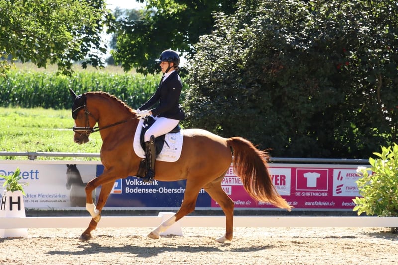 I am offering my 8-year-old gelding Franz for sale, who is consistently motivated and simply convincing in character. He has recently competed in his first proper season at shows, gaining valuable experience in the L and M dressage classes. He is positively motivated and behaves well both in the trailer and when competing away from home. Franz is perfectly suited for ambitious riders looking for a partner to grow with in dressage. He also jumps with great enthusiasm and demonstrates talent in this discipline as well. In addition to his sporting ambitions, he enjoys long rides, hacks, and ground work. He is also very kid-friendly. He is being sold only due to personal circumstances, so this is not a desperate sale. Franz will only be sold to a knowledgeable owner and in a stable environment with daily turnout (365 days a year, more than 6 hours per day). If you are interested or have any further questions, please feel free to contact me. Viewings and test rides are possible by appointment. A fee of €40 will be charged for test rides to prevent misuse, but this amount will be credited towards a purchase.