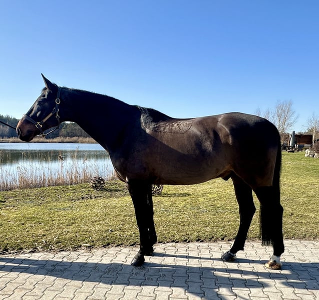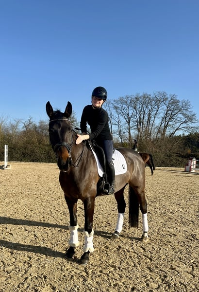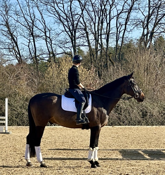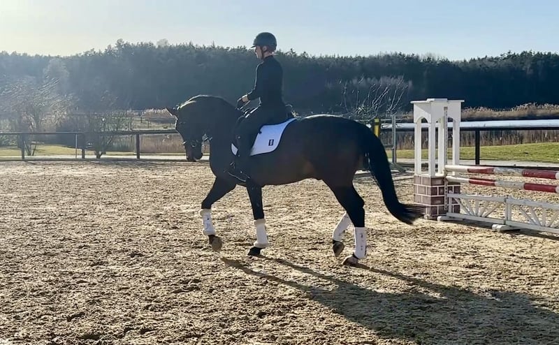 For sale is "Barneby" – an 8-year-old Westphalian gelding by Backround HBS (Boston x Florencio) x Hotline x Don Schufro, standing approximately 173 cm (17.1 hh). Barneby is a true eye-catcher in the dressage arena: tall, with lots of presence and that certain something! His pedigree combines the "Who's Who" of dressage sires – and this quality is also reflected under the saddle. He impresses with a very pleasant riding feel, is comfortable to sit, rideable, and always maintains steady, honest contact. Three good, correctly built basic gaits and a positive work attitude make him a well-rounded, harmonious package. He has already been successfully competed in A-level show jumping and A-level dressage tests, with placements. Currently, he is beginning lessons in L-level dressage, making him an ideal versatile all-rounder with a focus on dressage. Barneby is an alert, motivated gelding who wishes to continue his development. In daily handling, he is friendly, people-oriented, and uncomplicated. He also handles farrier visits, loading, and trailer travel without issues. An ideal horse for the ambitious leisure rider or competitor seeking an honest, talented partner for further training. Sold privately.