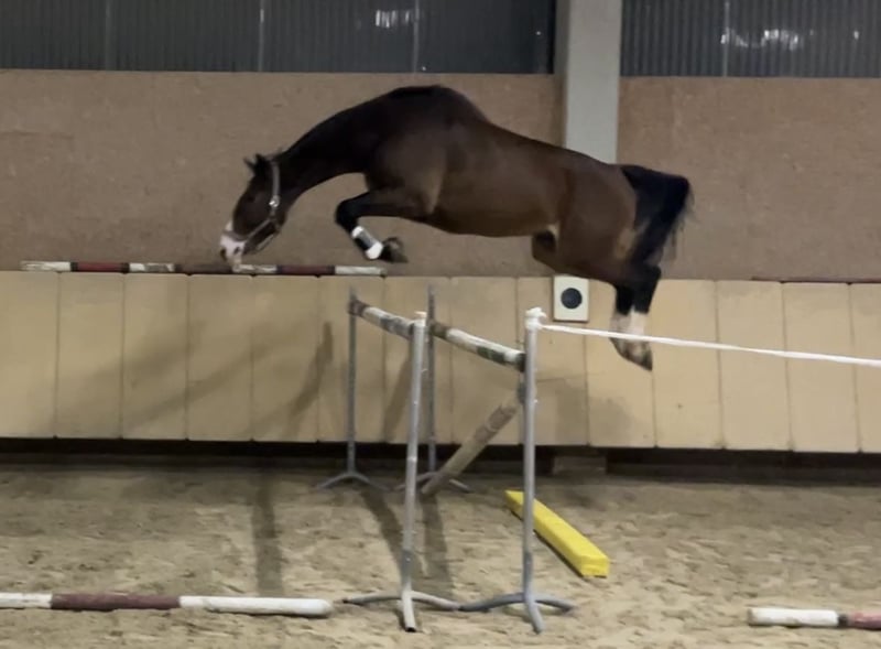 ⭐️ AKU available and in good condition ⭐️ Sire: Berlin x Balou du Rouet - Cassini I, Capitol I, Grannus, Contendro I, Contender ⭐️ Born in 2017 ⭐️ Gelding ⭐️ 16.1 hh (1,76 m) ⭐️ Herd-safe ⭐️ Load and farrier-friendly ⭐️ Ridden by children ⭐️ Calm and well-behaved in the field (in a group) ⭐️ Located in Würzburg ⭐️ Transport available at an additional cost ⭐️ Training possible ⭐️ Large AKU available for approx. €800 ⭐️ On behalf of the owner A very sweet gelding with the typical show jumping horse conformation and an exceptional markings. The gelding is an absolute sweetheart in handling and can be easily managed by children. Under saddle, he is ridden with sensitivity. He is eager to please and always very grateful for harmonious riding, showing this clearly. He needs some muscular training for sustained collected canter. He has also been ridden by children and beginners and has shown great effort and patience during trial lunging, despite no formal training. In the field, he is a bit insecure alone but completely unafraid and well-behaved with another horse. Only serious inquiries with genuine interest will be answered. Unreasonable or rude inquiries will not be considered. A trial ride costs €25, which will be deducted from the purchase price. Beginners only with the accompaniment of an experienced trainer. Price may increase with further training and education.