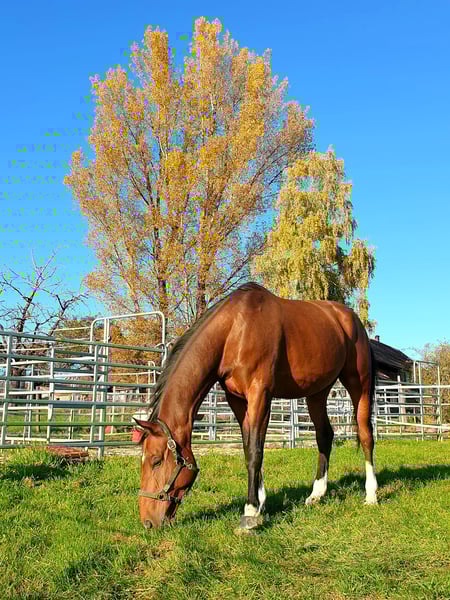 Purchased directly from the breeder and consistently well-trained, he is calm and easy to handle in everyday situations, as well as when being groomed, shod, or examined by the veterinarian. He is reliable in the terrain, whether alone or in a group. The gelding has nice basic gaits and impresses over jumps with talent and sufficient scope, which is why he is not suitable for beginners. The horse is not a weight-carrying mount and is therefore only suitable for lighter riders. No X-ray findings available. Viewing and trial riding possible by appointment.