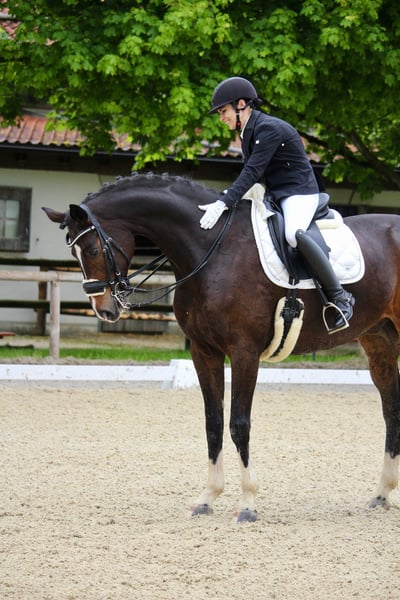 Buscamos un nuevo hogar de 5 estrellas para nuestro Leo. Leo tiene unos movimientos muy bonitos y elásticos, que le han permitido convertirse en un ganador habitual en pruebas de doma clásica de nivel L y M. También ha conseguido victorias en pruebas de doma normal hasta la clase M* y clasificaciones hasta M**. También le gusta saltar, aunque con nosotros solo ha sido montado ocasionalmente en algunos saltos de gimnasia. También hemos salido al campo con él. Conoce los concursos de monta y los torneos "desde el remolque". Cargarlo y transportarlo en el remolque, así como el herrador y el veterinario, son tareas completamente sin problemas. Actualmente pasa medio día en el prado y tiene un establo con paddock; siempre se lleva bien con todos los caballos y busca el contacto. Nuestro perro puede saltar sobre él y hasta robarle las zanahorias de la boca. Todo esto lo acepta con calma. PERO: Es simplemente difícil de montar... Cuanta más fuerza adquiere y más caballo se vuelve, menos puedo manejarlo (mido 1,61 m). Creemos que con un jinete que le quede físicamente mejor, podría lograr mucho más, pero debo reconocer que no seré yo... No vendemos bajo ninguna circunstancia a un principiante. Tampoco es adecuado como caballo para un niño o un joven. Buscamos a alguien que aprecie lo querido y bonito que es y que se atreva a recorrer un camino difícil, ya que Leo siempre plantea nuevos retos. Por una parte, por las razones mencionadas anteriormente y, por otra, porque tiene un diagnóstico (chip) y es coprador, se ofrece a un precio muy por debajo de su valor. Es importante para nosotros que tenga un buen hogar. Podemos enviar un video a petición. Muy importante: Vendemos de forma privada y no podemos ofrecer el servicio de un comerciante, ni ninguna garantía o responsabilidad. Por lo tanto, por favor, hagan todas las preguntas de antemano y expresen cualquier inquietud. Responderemos todo lo mejor que podamos.
