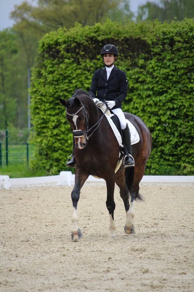 Wij zoeken voor onze Leo een nieuw 5-sterren thuis. Leo heeft zeer mooie elastische gangen, die hem tot seriewinnaar in de dressuurklasse L en M hebben gemaakt. Ook in reguliere dressuurproeven heeft hij overwinningen behaald tot en met klasse M* en plaatsingen tot M**. Hij springt ook graag, maar is bij ons slechts af en toe over een paar gymnastieksprongen gereden. Ook in het terrein zijn we met hem geweest. Hij kent opstaltoernooien en toernooien "vanuit de trailer". Inladen en trailer rijden, evenals de smid en dierenarts, gaat allemaal absoluut probleemloos. Hij staat momenteel halftijds op de wei en heeft een stal met paddock - hij komt altijd meteen goed overeen met alle paarden en zoekt ook altijd contact. Onze hond mag op hem springen en zelfs de wortels uit zijn mond stelen. Dat laat hij allemaal toe. MAAR: Hij is gewoon moeilijk te rijden... Hoe meer kracht hij krijgt en hoe meer paard hij wordt, hoe minder ik (1,61 m klein) het voor elkaar krijg om met hem om te gaan. We geloven dat hij met een ruiter die fysiek beter bij hem past, zeker nog veel kan bereiken - maar ik moet toegeven dat ik dat niet zal zijn... We verkopen absoluut niet aan een beginner. Ook als paard voor een kind of een jongere is hij niet geschikt. We zoeken iemand die waardeert wat voor een lieve, mooie kerel hij is en die zich in staat acht om een moeilijke weg te bewandelen, omdat Leo je telkens weer nieuwe raadsels voorlegt. Enerzijds om de hierboven genoemde redenen en anderzijds omdat hij een bevinding (chip) heeft en een koppelaar is, wordt hij ver onder zijn waarde aangeboden. Het is voor ons belangrijk dat hij een goed thuis krijgt. We kunnen op aanvraag graag een video sturen. Heel belangrijk: We verkopen particulier en kunnen geen service van een handelaar bieden, noch iets als een garantie of waarborg. Daarom graag alle vragen vooraf stellen en alle zorgen uiten. We zullen alles naar beste weten en geweten beantwoorden.