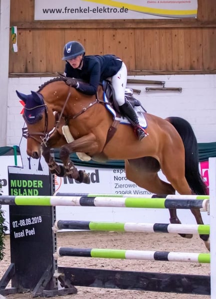 Diva is a 9-year-old daughter of Stakkato Gold. She is of medium build and has good rideability and riding comfort. In the course, she impresses with her overview and attitude. Even less than optimal distances are not a problem for her. In handling, she can be a bit mareish at times, but she is not malicious - just a little diva. Diva is shod but is also familiar with being barefoot. She enjoys regular turnout and is also comfortable in the terrain. Currently, she is successfully competing in show jumping at the L class level with her rider. Further information and appointments for viewing can be requested via WhatsApp or phone.