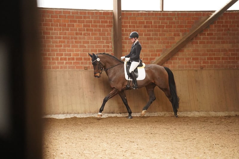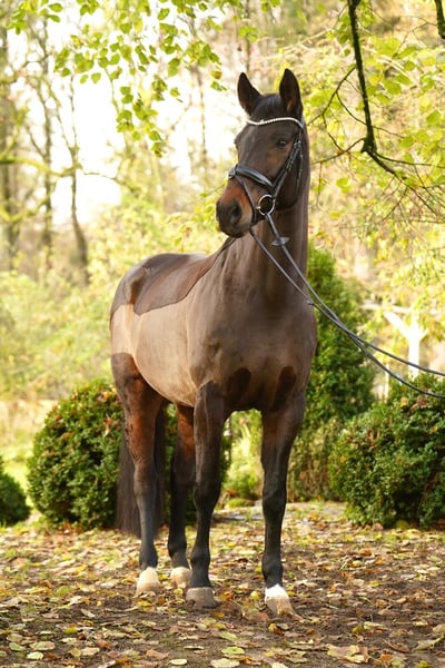 For sale is an impressive 8-year-old mare. This dark bay beauty captivates not only with her elegant appearance but also with her talent and willingness to work with her rider. She has already achieved multiple placings in L-level dressage competitions. **Features:** - **Breed:** German Riding Horse (Deutsches Reitpferd) - **Gender:** Mare - **Year of Birth:** 2016 - **Color:** Dark Bay - **Height:** 16.1 hh - **Training Focus:** Dressage This mare is ideal for someone who has the desire and time to grow together with a wonderful horse. She consistently demonstrates motivation and eagerness to learn, making her an excellent partner for talented dressage riders. Her harmonious conformation and affection for people make daily training a pleasure. She can be ridden alone or in a group, suitable for hacking out. If you are looking for a horse that seeks a strong bond with its handler and brings joy to everyday handling, this mare could be the perfect choice for you. Please do not hesitate to contact us for more information or to arrange a meet-and-greet. We look forward to introducing you to this talented mare in person. A trial ride fee of €50 applies, which will be deducted from the purchase price.