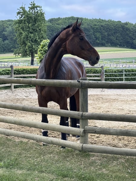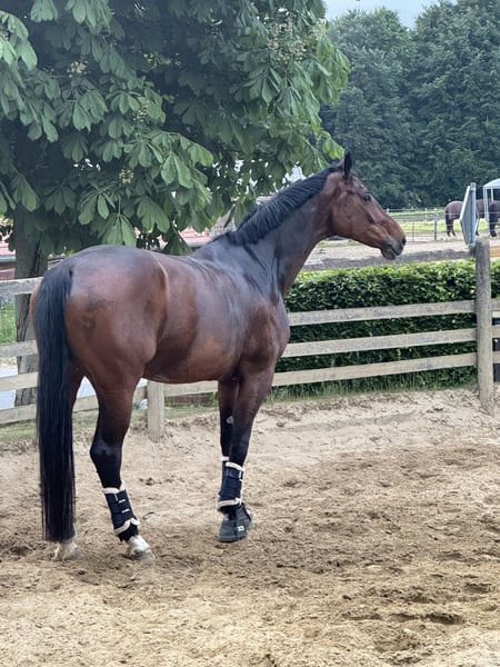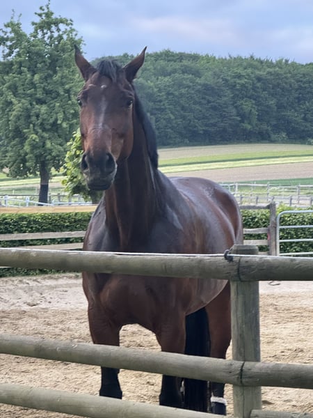 Schweren Herzens trenne ich mich aus persönlichen Gründen . da ich operiert werden muss und ihr das Training, was sie Brauch nicht bieten kann sie ist nicht einfach aber wenn man Saphira auf seiner Seite hat, ist sie eine tolle Stute.. Saphira ist 10 Jahre Sie stammt ab von Sandro Hit und hat ein Stockmaß von 1,82. Vielleicht auch für Züchter Interessant,hatte noch kein Fohlen. Wenn sie vertrauen in ihrem Menschen hat, ist sie sehr gut zu reiten . Deshalb suche ich für Saphira, einen erfahrenen Reiter mit viel Geduld und Einfühlungsvermögen . Da sie zur Zeit nur wenig geritten ( aber longiert ) wird, befindet sie sich dressurmäßig auf einem guten A-Niveau, was in fördernden Händen aber auf jeden Fall noch ausbaufähig Ist. Ich selbst bin nicht mit ihr gesprungen, jedoch zeigt sie große Freude bei der Stangenarbeit. Für Saphira wünsche ich mir ein liebevolles Zuhause, wo regelmäßig und konsequent mit ihr gearbeitet wird, sodass sie Vertrauen zu ihrem neuen Menschen aufbauen kann. Sie wurde in der Halle sowie auf dem Außen Platz geritten, war schon im Gelände mit einem weiteren Pferd. Für alles weitere stehe ich telefonisch zur Verfügung. Man kann Saphira gerne kennen lernen. Videos kann ich gerne zuschicken Es besteht ein Befund , durch gutes intensives training laut Tierarzt weiterhin reitbar . Leichte Arthrose HWS zwischen dem sechsten und siebten Halswirbel, Sie war immer gesund, ist nie lahm gegangen, Bilder kann ich gerne schicken , vom Rücken gibt es auch Bilder ohne Befund. 01703081241