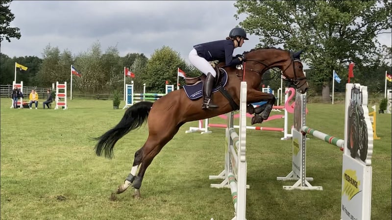 Wir müssen uns leider von unserer Stute trennen, da meine Tochter aufgrund von Ausbildung und Einstieg in den Beruf leider nicht mehr ausreichend Zeit findet um ihr gerecht zu werden. Fiona ist eine wunderschöne Westfalenstute mit einem mittleren Maß von 166cm die in allen Sparten bis L ausgebildet ist. Ihre schönen Grundgangarten und ihre gute Rittigkeit brachten ihr fast immer sehr gute Noten in der Dressur. Auch im Springen will sie immer auf die andere Seite. Sie möchte allerdings auch etwas geritten werden um ihr Potential zeigen zu können. Daher ist sie nicht für Anfänger geeignet. Sie ist sowohl in der Vielseitigkeit VA** platziert, als auch hat sie A Springen gewonnen und ist auch in der Dressur A platziert. Auf dem Turnier ist sie super unkompliziert wie auch zuhause, geht gut auf den Hänger und ist brav beim Schmied und Tierarzt. Sie möchte gern weiterhin viel auf die Koppel, das wäre ein absolutes Muss. Wir wünschen uns für sie einen Menschen der sie genauso liebt wie wir und der mit ihr tolle Sachen erleben möchte.