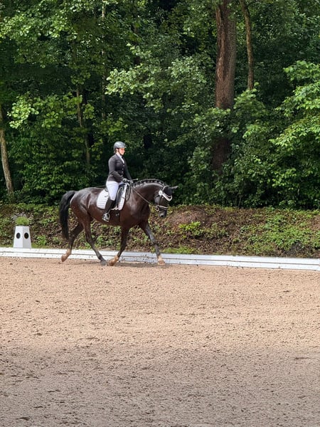 Westphalian mare, born May 24, 2014 – placed in dressage class A, started with L-level lessons – eligible for support We are offering a lovely Westphalian mare, born in 2014. She has achieved placement in dressage class A and has begun L-level training. She possesses a solid basic education, is familiar with gymnastics exercises, and has experience in ground work. She is well-behaved when hacking out. She has had limited experience in the open terrain alone, so she is looking for a confident rider with some experience to support her in this area. At competitions, she is confident and composed, performing as well as she does at home. In daily handling, she is friendly, uncomplicated, and is, of course, shoeable. Health status: - AKU from 2017 available - X-rays of the back from 2024 available - Annual dental check-up - Semi-annual osteopathic care She is not suitable for beginners and requires a secure, consistent rider who can continue her development. With proper training, she has great potential. Height: 1.70 m (16.1 hh) Pedigree: - Sire: All at Once - Dam: Finesse This is not a desperate sale; she is being offered solely due to lack of time and only to the best of hands.