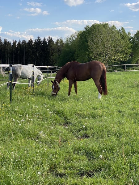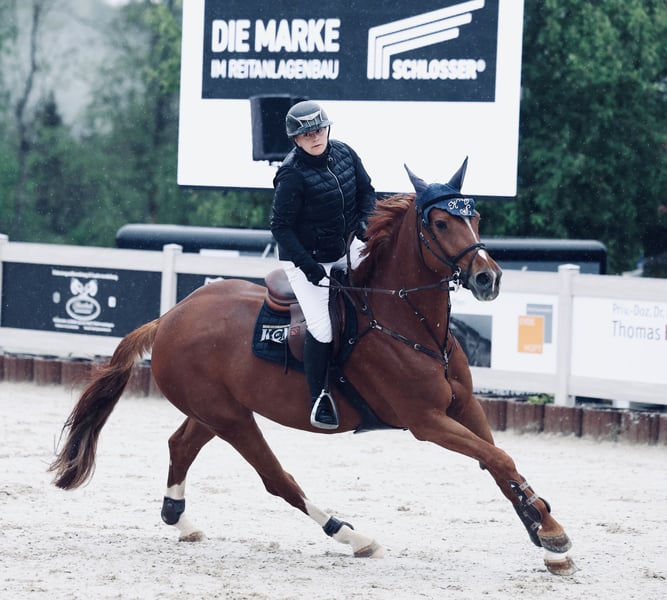 Klacz 12-letnia Cascadello x Quidam de Revel „Cinni” zaczęła swoją karierę sportową późno, ponieważ wcześniej miała źrebaki. Kupiłem ją w październiku 2022 roku, aby mieć drugiego konia do ciężkiej Amatorskiej Tour. I tutaj doskonale wywiązała się ze swojej roli. Udało mi się z nią wziąć udział w Badenii-Wirtembergii i zdobyć kilka miejsc do 1,40 m. Cinni ma badania weterynaryjne z października 2022 roku, które wykazały, że wszystko jest w porządku. Cinni jest bardzo skoczna, dlatego z pewnością nadaje się również do wyższych zadań. Potrafi również czarować z niemożliwych odległości. Niestety, muszę się rozstać z koniem z powodu braku czasu. Dlatego w ten sposób szukam nowego partnera dla Cinni. W obcowaniu jest bardzo grzeczna, chętnie chodzi w teren, jest spokojna przy podkuwaniu i załadunku. Lepiej miejsce niż cena. Po więcej informacji proszę kontaktować się pod numerem 0176 3294 1095