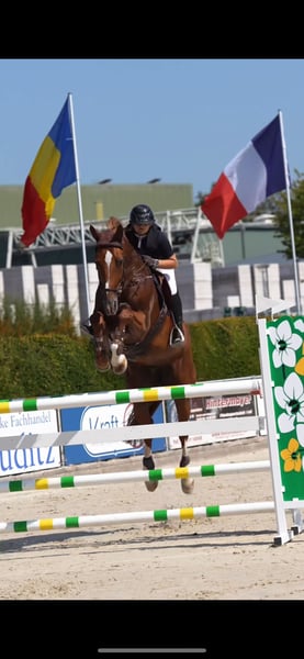 Mare 12 years old Cascadello x Quidam de Revel "Cinni" entered the sport late, as she already had foals. I bought her in October 2022 to have a second horse for the heavy amateur tour. And she has performed her job perfectly. I was able to participate in the Baden-Württemberg Championships with her and bring home several placements up to 1.40m. Cinni has a vet check from October 2022, which was all clear. Cinni is very powerful in jumping and is certainly well suited for higher tasks. She can also work magic from impossible distances. Unfortunately, I have to part with a horse due to lack of time. Therefore, I am looking for a new partner for Cinni through this means. She is very well-behaved in handling, enjoys going out into the countryside, and is good for the farrier and loading. Home before price. For more information, please feel free to contact the following number: 0176 3294 1095