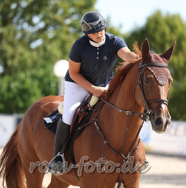 Stute 12j. Cascadello x Quidam de Revel „Cinni“ kam erst spät in den Sport, da sie bereits Fohlen hatte. Ich habe sie im Oktober 2022 gekauft, um ein zweites Pferd für die schwere Amateur Tour zu haben. Und hier hat sie ihren Job perfekt gemacht. Ich konnte mit ihr an den Baden Württembergischen teilnehmen und mehrere Platzierungen bis 1.40m mit nach Hause nehmen. Cinni hat einen TÜV vom Oktober 2022, bei dem alles in Ordnung war. Cinni ist sehr sprunggewaltig und deshalb mit Sicherheit auch für höhere Aufgaben bestens geeignet. Sie kann auch aus unmöglichen Distanzen etwas zaubern. Leider muss ich mich aufgrund von Zeitmangel von einem Pferd trennen. Deshalb suche ich auf diesem Weg einen neuen Partner für Cinni. Sie ist im Umgang super brav, geht gerne ins Gelände, ist Schmiede- und Verladefromm. Platz vor Preis. Für weitere Infos gerne unter folgender Nummer kontaktieren 0176 3294 1095
