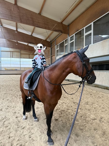 Harmony ist eine 13-jährige westfälische Stute von Hosco (Spanier) x Fidermark mit einem Stockmaß von ca. 1,64 m. Sie wurde in jungen Jahren vom Züchter erfolgreich bis Dressurpferde M ausgebildet und vorgestellt. Aktuell ist sie sicher im A-Bereich unterwegs und überzeugt als routinierte Lehrmeisterin. Harmony ist kandarenfertig, sehr sitzbequem und vermittelt ihrem Reiter ein hervorragendes Reitgefühl. Unter dem Sattel zeigt sie sich leistungsbereit, ehrlich und zuverlässig. Auch im Gelände bleibt sie stets brav und nervenstark. Dank ihres ausgeglichenen Charakters eignet sie sich sowohl für ambitionierte Freizeitreiter als auch für Reiter mit sportlichen Zielen, ebenso für schwächere Reiter, die ein sicheres Pferd suchen. Ein Pferd mit Top-Charakter und solider sportlicher Ausbildung. Sattel und Trense können gegen Aufpreis übernommen werden. Viedeos können per PN verschickt werden, sowie die Abstammung aus dem Pass. Impfungen sind grade alle aufgefrischt worden, große AKU liegt vor