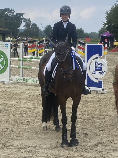 Verkaufe elegante Westfalen Stute (Rational/Fleurop)– tragend von Diamantenglanz Zum Verkauf steht eine sehr schicke, braune Westfalen Stute, geboren im Jahr 2013. Sie wurde von einem 14 jährigen Mädchen A/L Dressur (E u A Springen)erfolgreich auf dem Turnier vorgestellt.Die Stute hat 3 sehr gute Grundgangarten ,einen tollen Charakter und ist fein zu reiten.2025 hat sie ein sehr schickes Hengstfohlen geboren u ist derzeit tragend von Diamantenglanz.Videos u nähere Infos gerne per Nachricht.