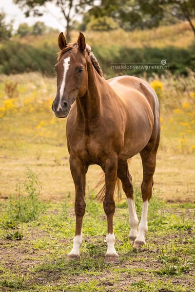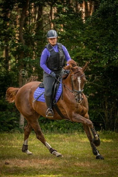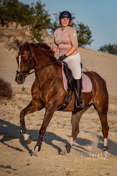 Met een zwaar hart zet ik mijn prachtige merrie Deep Sea Devil W (Dipsy) te koop. Dipsy is een energieke, gevoelige merrie met drie goede gangen en een uitstekende bouw. Eerlijk gezegd is ze een echt juweel voor de juiste ruiter. Ze kan alles: dressuur (voorheen L2), een beetje springen, buitenritten inclusief strandritten, cross-country, pole work, working equitation, barefoot en met een halsriem – niets is haar te veel. Dipsy gaat graag mee uit en geniet het meest van buiten zijn; ze is minder enthousiast over wedstrijden. Voor de juiste ruiter is Dipsy eerlijk onder het zadel, maar ze heeft een sterk karakter en dat maakt ze duidelijk. Ze heeft een consistente, kalme en zelfverzekerde ruiter nodig, iemand die haar de geruststelling geeft die ze zoekt. Wanneer ze gestrest of onzeker is, kan ze zich terugtrekken, daarom is ze niet geschikt voor een beginnende of onzekere ruiter. Dipsy is buitengewoon goed te hanteren. Ze kan grondwerk doen, op lange lijnen werken en longeerwerk. Dankzij regelmatige desensibilisatietrainingen voor angsten is ze niet snel bang voor iets. Ze gaat makkelijk naar de hoefsmid en draagt hoefijzers. Vaccinaties en gebitscontroles worden altijd tijdig bijgehouden. De zadelmaker komt regelmatig langs, en ze krijgt ook regelmatig behandeling van een fysiotherapeut en osteopaat. Ze reist alleen of met een andere paard in de trailer. Ben jij iemand die voorbij haar gevoelige buitenkant kan kijken? Dan krijg je er een fantastische metgezel voor terug, waar je elke dag met veel plezier en trots mee werkt. Dipsy gaat alleen naar een perfect 5⭐️ thuis, waar ze heel lang mag blijven. Geen handelaren of doorverkoop.