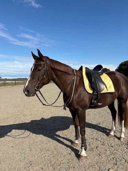 It is with a heavy heart that I am putting my lovely mare Deep Sea Devil W (Dipsy) up for sale Dipsy is a spirited, sensitive mare with three good gaits and excellent conformation. To be honest, she’s a real gem for the right rider. She can do anything. Dressage (previously L2), a bit of jumping, trail rides including beach rides, cross-country, pole work, working equitation, bareback and neck rope – nothing is too much for her. Dipsy loves to go out with you and enjoys being outdoors the most; she is less keen on competitions. For the right rider, Dipsy is honest under saddle, but she has a strong character and makes that clear. She needs a consistent, calm and confident rider, someone who gives her the reassurance she requires. When stressed or uncertain, she can become reserved, which is why she is not suitable for a novice or insecure rider. Dipsy is extremely well-behaved when handled. She can do groundwork, work on long reins and be lunged. Thanks to regular fear-desensitisation training, she is not easily frightened by anything. She is easy with the farrier and wares sheoes. Vaccinations and dental check-ups are always kept up to date. The saddler visits regularly, and she also receives regular treatment from a physiotherapist and osteopath. She travels alone or with another horse on the trailer. Are you someone who can see past her sensitive outside? Then you’ll gain a fantastic companion in return, one you’ll enjoy working with every day with immense pleasure and pride. Dipsy is only going to the perfect 5⭐️ home where she’ll be allowed to stay for a very long time. No dealers or resellers.