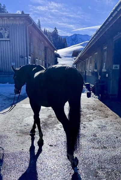 Wir haben Scarlette für unsere Reitschule gekauft, müssen uns jedoch eingestehen, dass sie bei uns unterfordert ist. Scarlette ist eine absolut feinfühlige und sensible Stute - bei der Longenarbeit genügt es, mit ihr zu flüstern. Sie ist absolut aufmerksam und fein im Umgang. Ob am Anbindeplatz oder in der Box - sie ist immer brav beim Putzen und Hufe auskratzen. Sie lässt sich anstandslos satteln und trensen und ist immer artig im Handling. An der Longe und bei der Bodenarbeit macht sie viel Spaß, da sie immer aufmerksam gegenüber ihrem Menschen ist. Beim Reiten ist sie mit viel Go ausgestattet und macht auch hier Spaß. Sie ist aufgrund ihres Tempos und auch ihrer Stärke kein Anfängerpferd - und kann auch mal die Stute unterm Sattel zeigen. Daher auch nicht für ängstliche Reiter geeignet. Insgesamt ein sehr liebenswertes Pferd, das leider nicht in unser Konzept des Kinder- und Anfängerreitunterrichts passt und daher nun eine passende Reiterin sucht, die ein umgängliches, aber dennoch sportliches Pferd im gehobenen Freizeitbereich sucht.