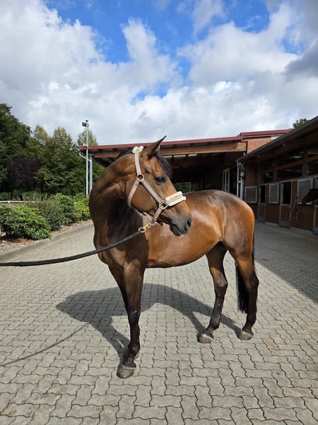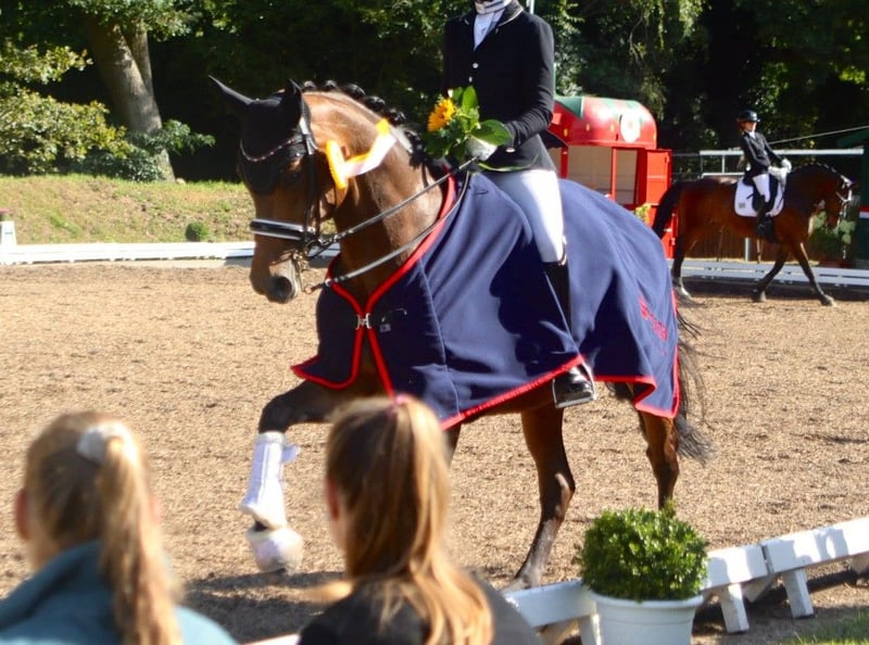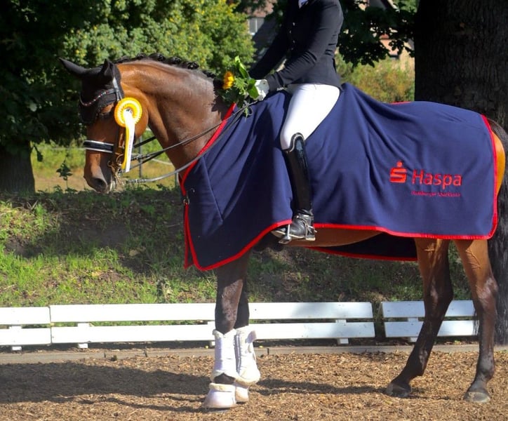 16-jährige Stute mit solider Ausbildung sucht neuen Wirkungskreis Zum Verkauf steht unsere 16-jährige Stute mit ansprechender Ausbildung und Erfahrung im Dressurviereck. Unsere "Jolie" ist bis zur Klasse "M" aktuell siegreich auf Turnieren vorgestellt worden und bewegt sich derzeit auf einem soliden M/S-Niveau. Sie hat aktuell den Hamburg Cup U25 Dressur in Hamburg-Bergstedt gewonnen. Sie verfügt über 3 überdurchschnittliche GGA mit viel Schwung und Taktsicherheit. Die Stute ist sehr brav im Umgang, menschenbezogen und anhänglich. Im Gelände sowie bei der Stangenarbeit ist sie zuverlässig und ausgeglichen. Auch an der Springarbeit hat sie viel Freude an Bodenarbeit und der Zusammenarbeit mit ihrem Menschen. Sie ist auf dem Turnier bis A**-Springen placiert. Von der Arbeitseinstellung her ist sie stets motiviert und gehfreudig. Sie eignet sich besonders gut als Umstieg vom Pony aufs Großpferd. Gesundheitlich ist sie einwandfrei, war nie ernsthaft krank oder lahm. Ein aktueller TÜV könnte bei Interesse angefertigt werden, Bei Interesse und weiteren Fragen können Sie uns gerne kontaktieren.
