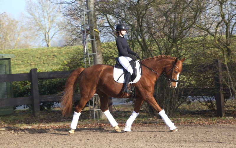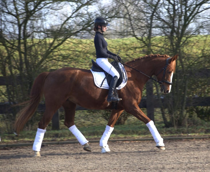 With a heavy heart, we have to part ways with our beloved chestnut mare Flora. Born in 2010, she stands at 1.74 meters and is by Fuechtels Floriscount OLD out of Wenzel 2. We purchased her three years ago for our then 13-year-old daughter to introduce her to competitive riding. Unfortunately, they didn’t quite match. Her previous owner had her competing up to L* dressage and L jumping levels, and she has won A** jumping classes. Flora has always been eager to work and enjoys movement; she truly is a hardworking horse. Therefore, her new owner should enjoy daily training and plan to ride her at least four times a week. She should also have access to a paddock or pasture daily to stay balanced, though she can become lively if not sufficiently exercised. As a typical mare, she needs to be won over and may test boundaries until she trusts her rider. Flora is not suitable for beginners or timid riders. She has two medical reports, but these do not restrict her riding ability (medical reports available for review). Test rides are possible at any time. In jumping, she would need some encouragement to get going again. For a confident rider, she is the perfect all-rounder! Videos can be provided upon request. Feel free to contact me via WhatsApp or phone: 0151 461 285 72.